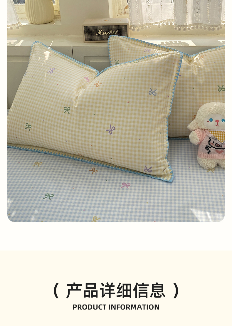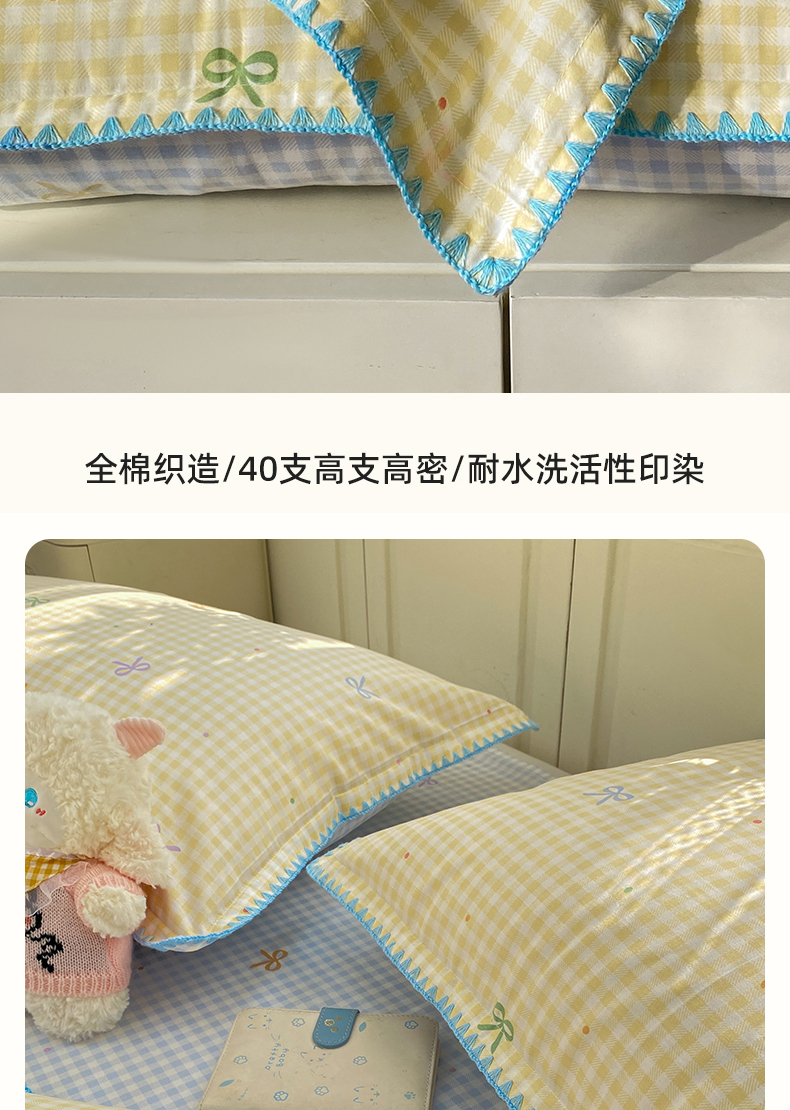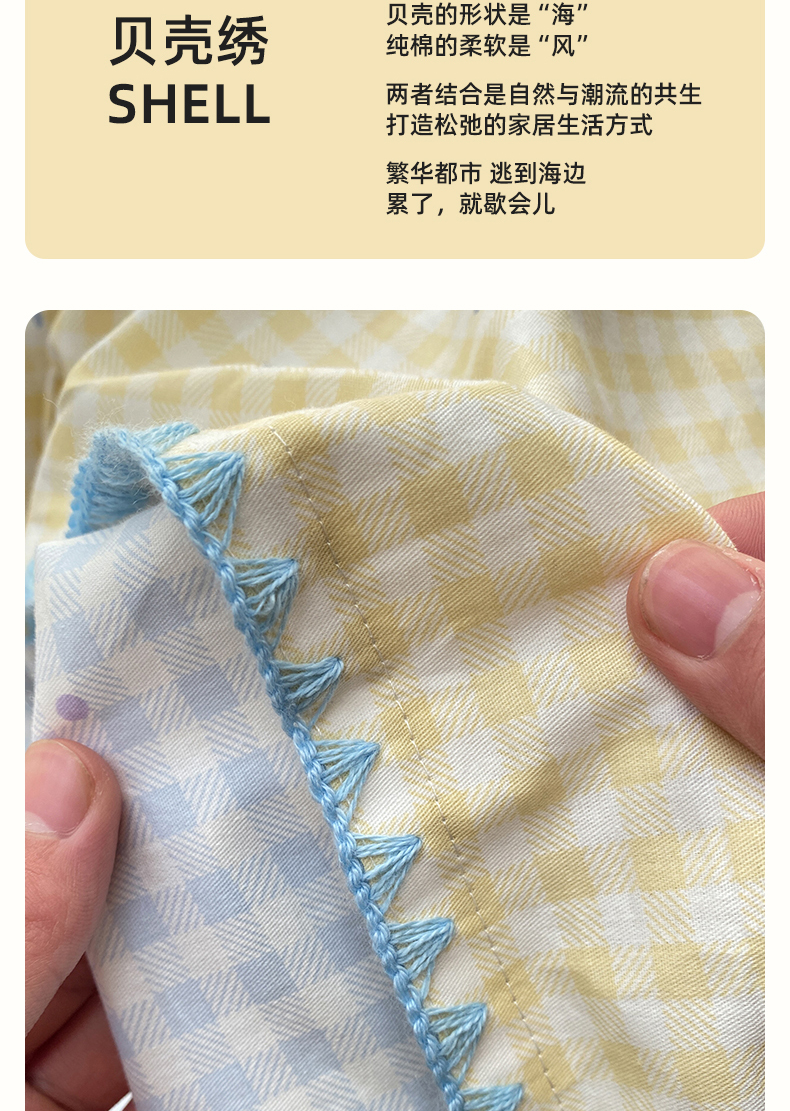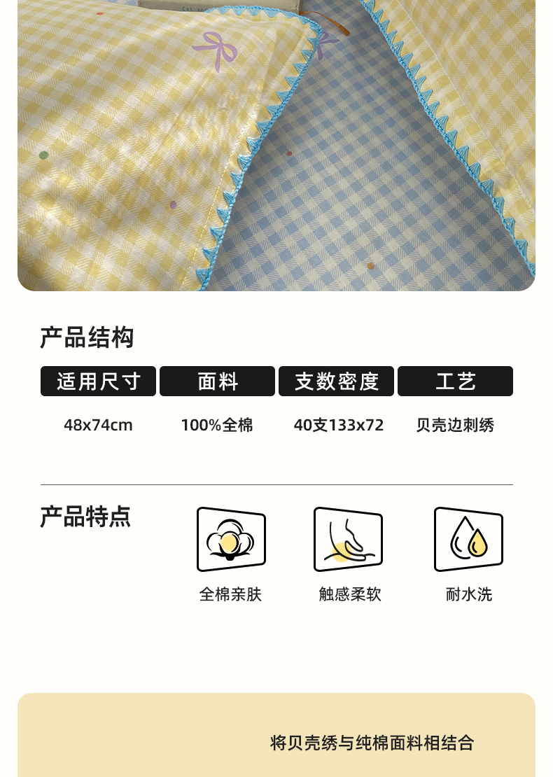 商品名称:浮光家居 2026新款全棉贝壳边纯棉单枕套系列2 夏日恋格黄