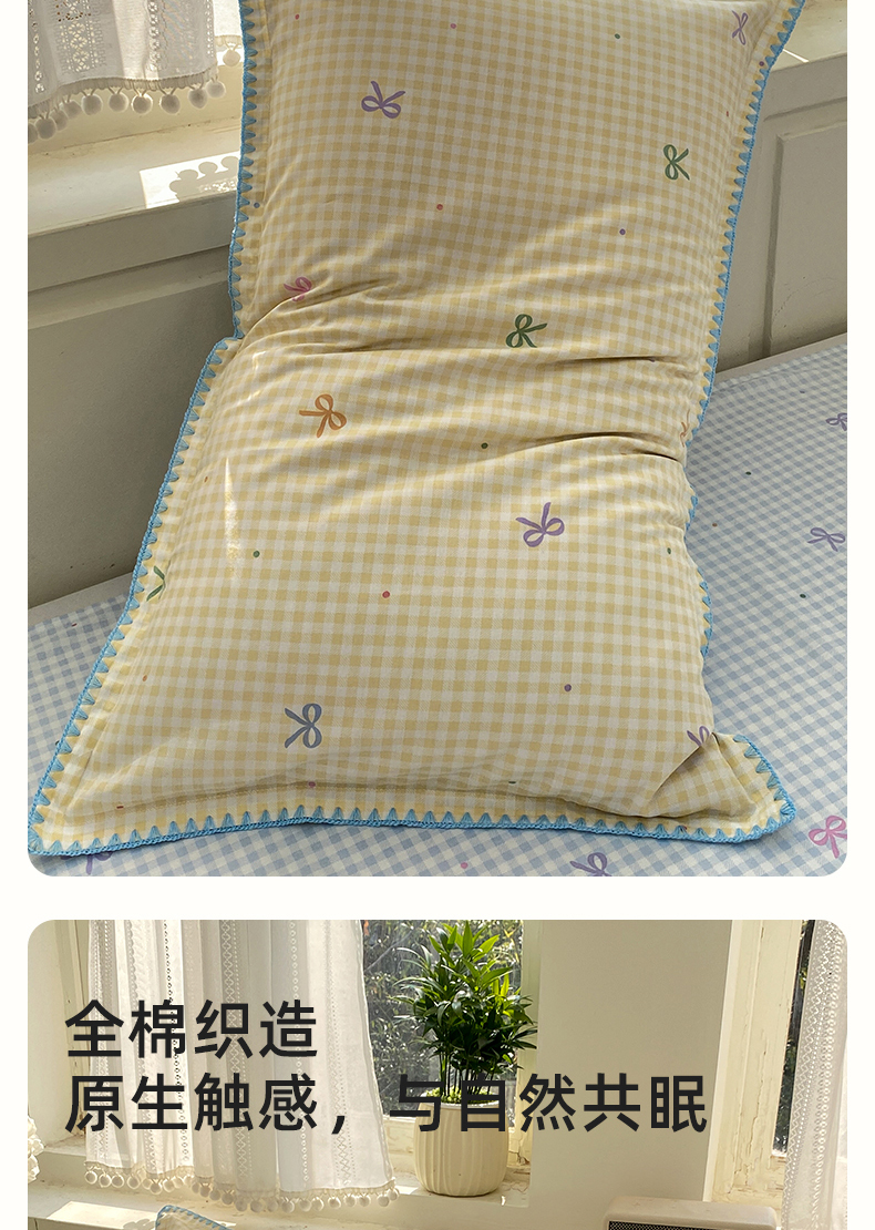 浮光家居 2026新款全棉贝壳边纯棉单枕套系列2 夏日恋格黄