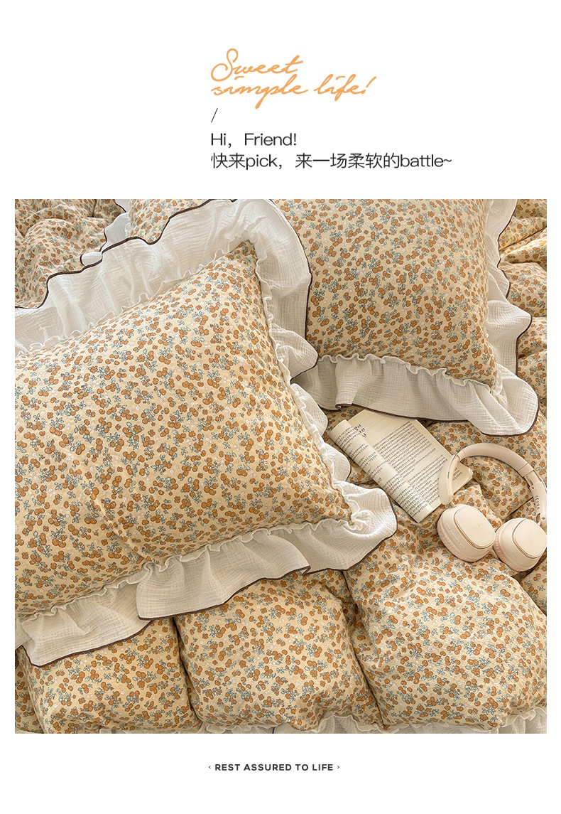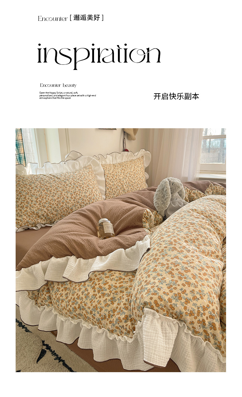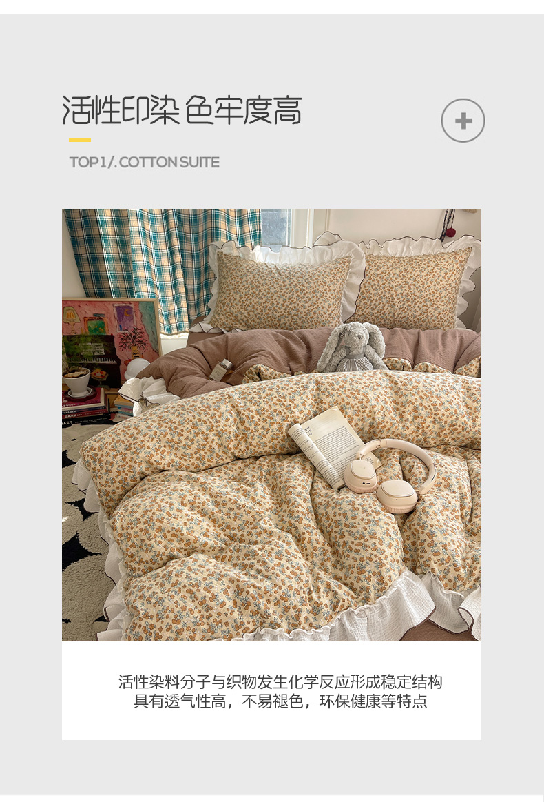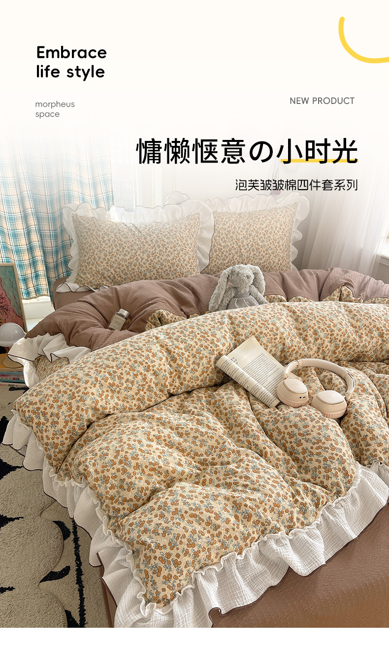 当前位置: 91家纺网 > 商品网购 > 床品套件 > 四件套 > 其它四件套 > 繁花家居 2026新款韩系花边小碎花泡芙棉云感邹邹纱费尔岛风四件套 秋日盛果