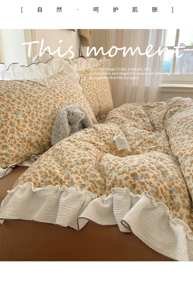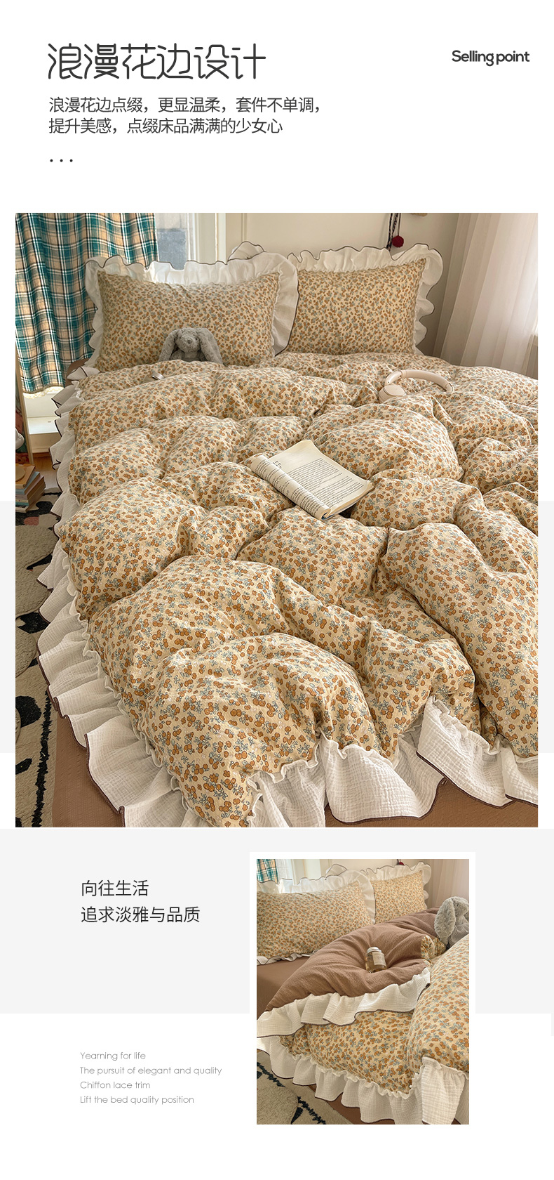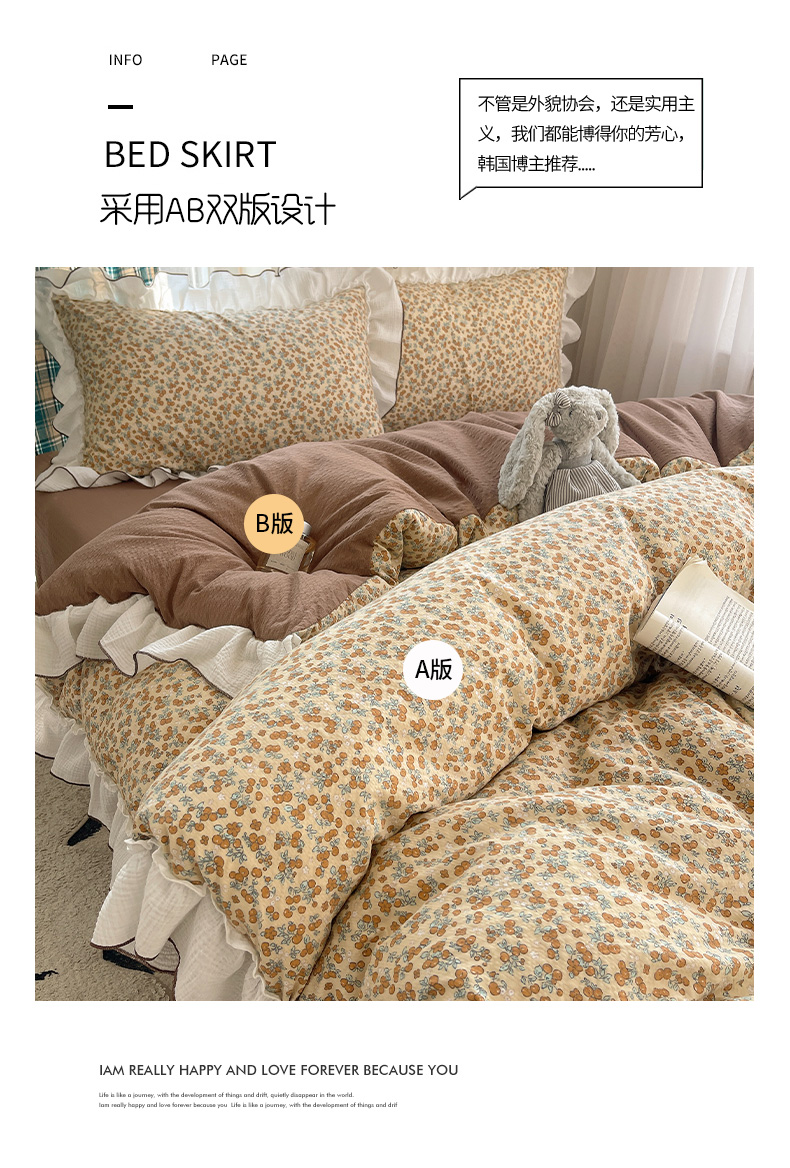当前位置: 91家纺网 > 商品网购 > 床品套件 > 四件套 > 其它四件套 > 繁花家居 2026新款韩系花边小碎花泡芙棉云感邹邹纱费尔岛风四件套 秋日盛果