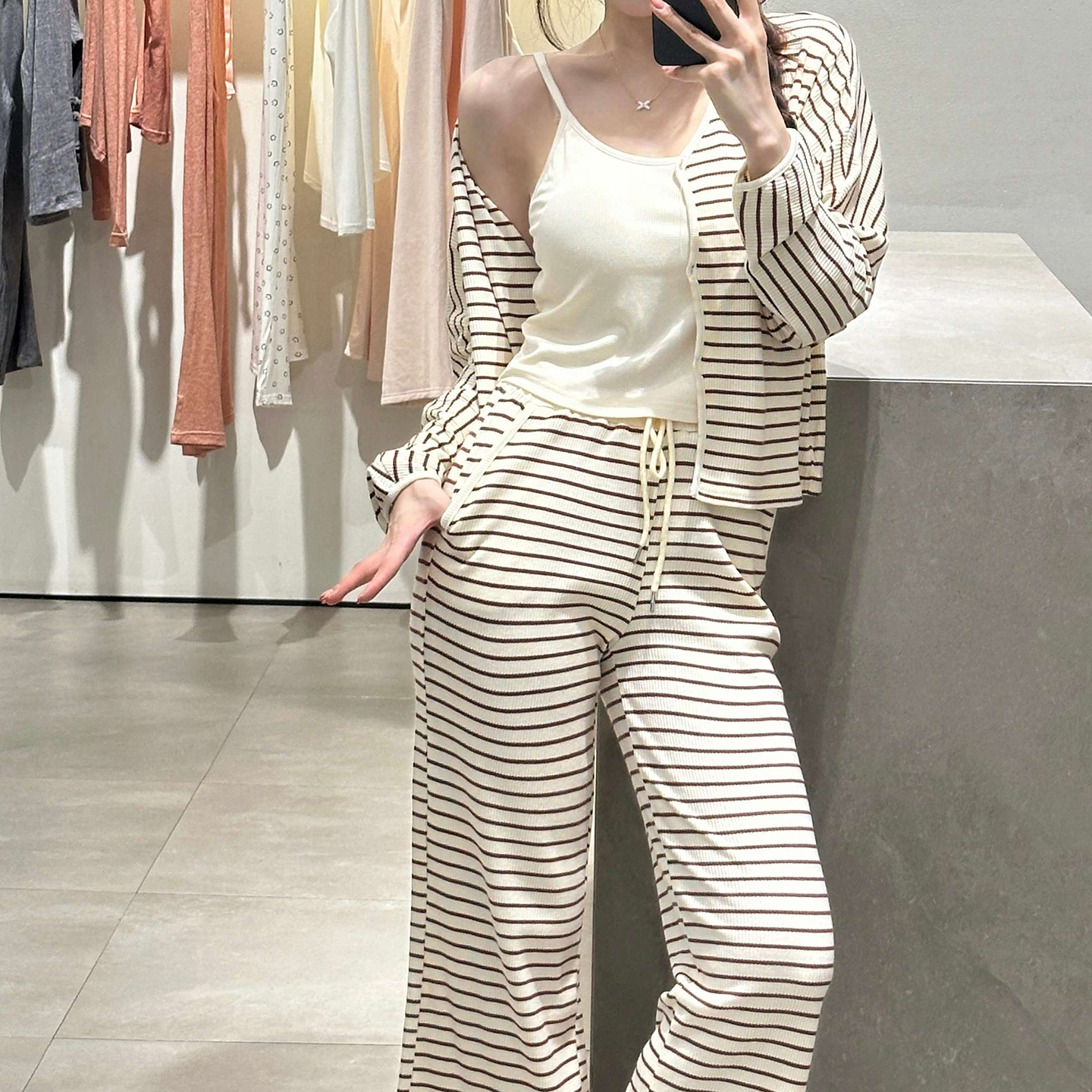 当前位置: 91家纺网 > 商品网购 > 居家日用 > 睡衣/家居服套装 > (总)妍景家居生活馆 2026新款简约条纹款三件套