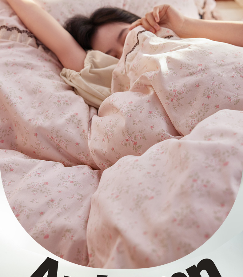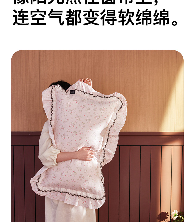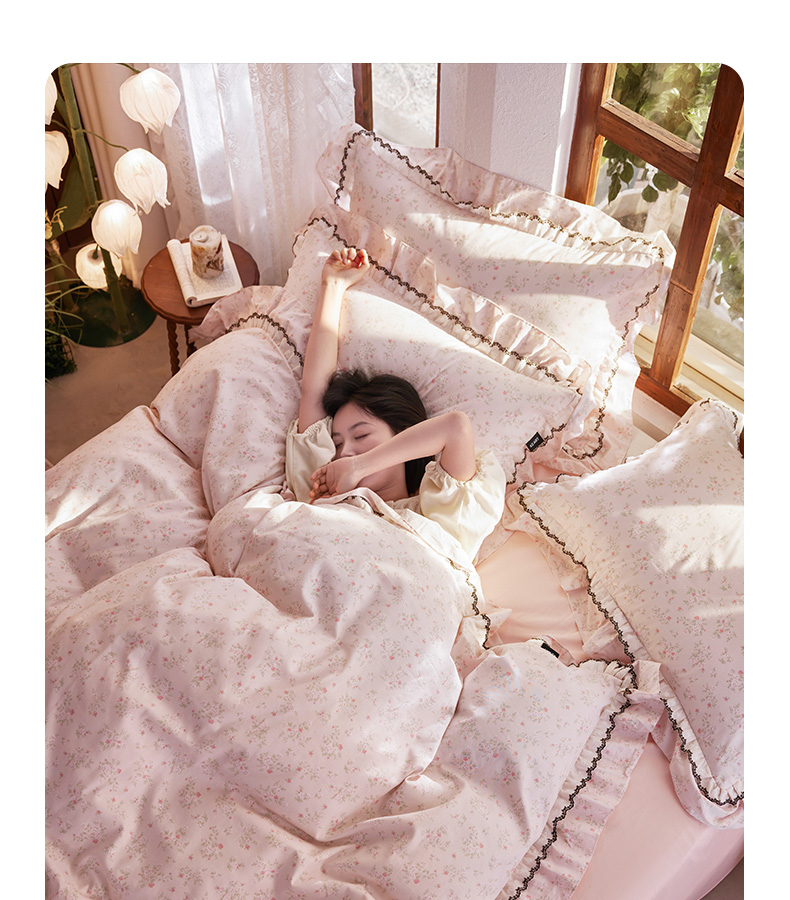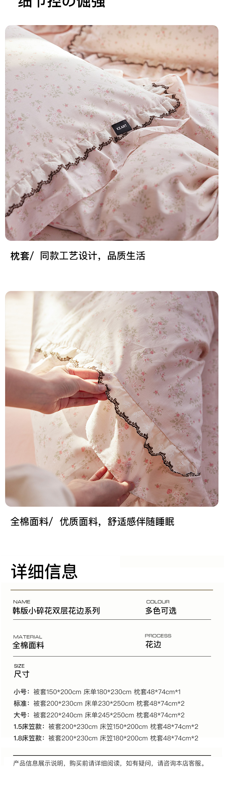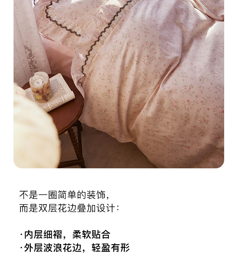 商品名称:卡姿家纺 2026春夏韩版小碎花双层花边系列 花镜小诗粉