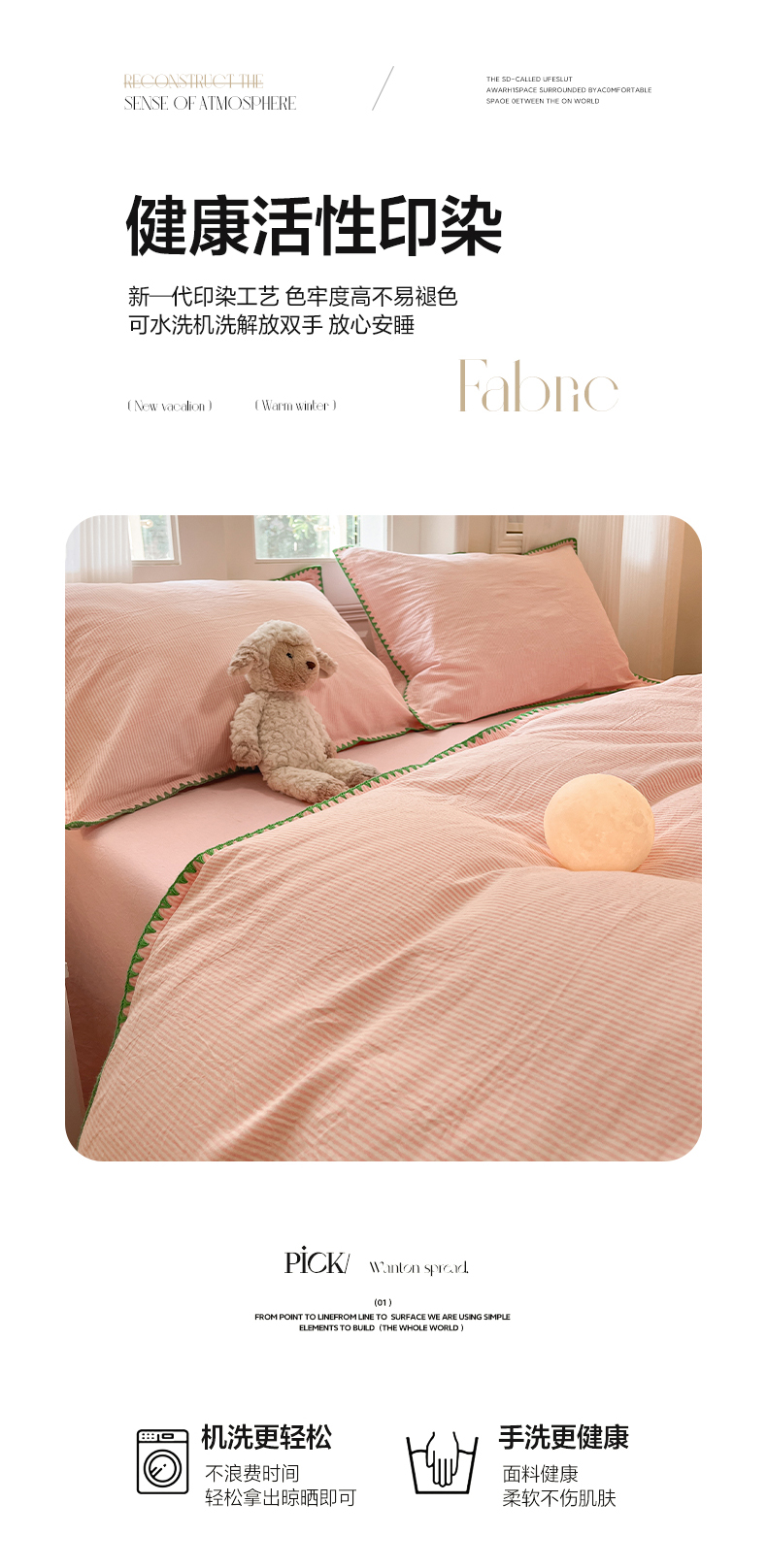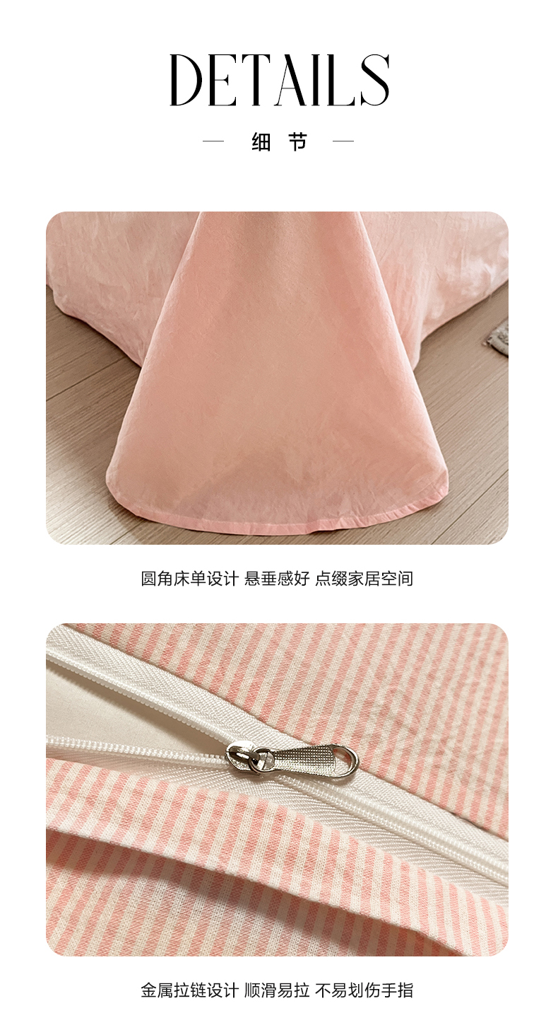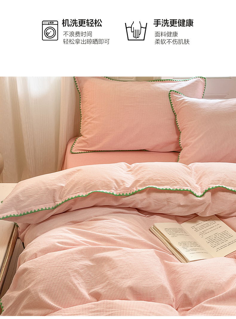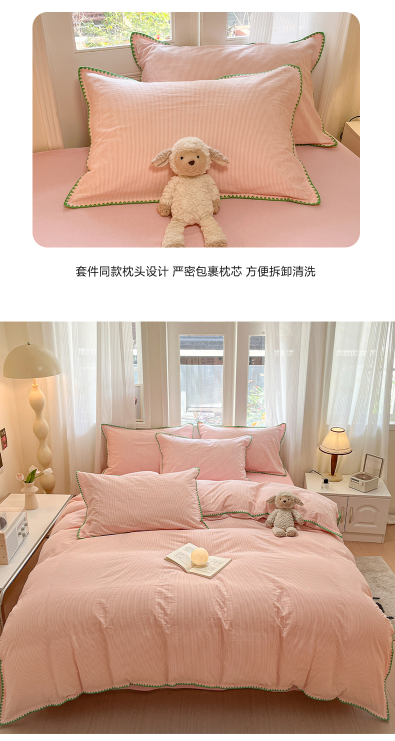 商品名称:禧澜庭 2026新款全棉纯棉水洗棉贝壳边三角针四件套 初见-粉