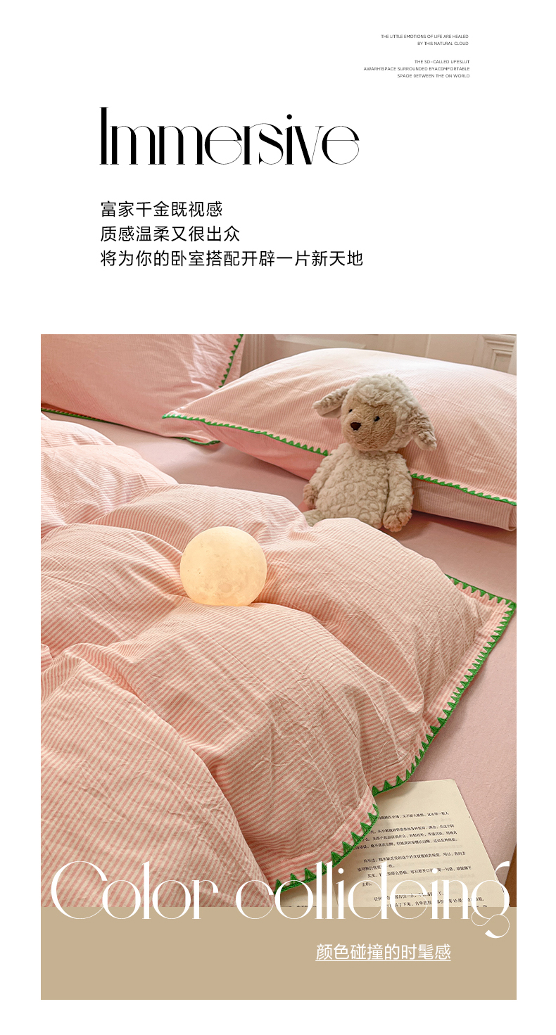 (总)禧澜庭 2026新款全棉纯棉水洗棉贝壳边三角针四件套,初见-粉,初见-黄,初见-灰,初见-蓝,简格-灰,简格-蓝,简格-紫,云芙-粉,云芙-黄