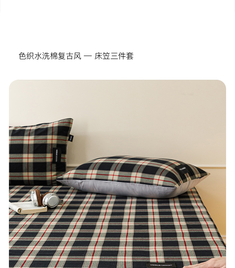 • 91家纺网 家纺一手货源 找家纺 卡姿家纺 2026春夏色织水洗棉复古风 — 床笠三件套 床笠-慕岛