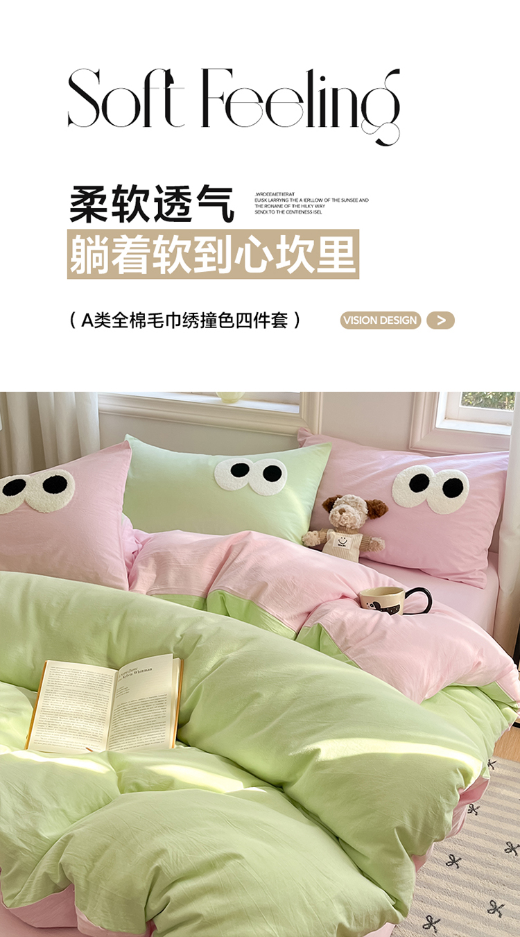 (总)禧澜庭 2026新款全棉纯棉水洗棉四件套大眼毛巾绣,海天蓝+奶油黄,白桃粉+都市灰,白桃粉+奶油黄,海天蓝+银翼灰,兰花紫+奶油黄,菱花白+浅卡其,抹茶绿+白桃粉,奶油黄+白桃粉,奶油黄+海天蓝,银翼灰+都市灰