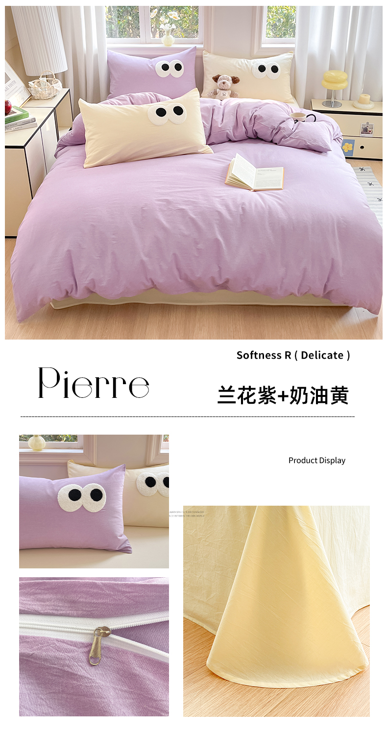 (总)禧澜庭 2024新款纯棉全棉水洗棉斜纹无印风纯棉四件套三件套,梵星蓝+奶黄,湖蓝+梧桐灰,抹茶绿+奶茶,奶昔白+卡其,奶昔白+抹茶绿,奶油粉+梧桐灰,驼色+奶茶色,银灰+梧桐灰,优雅紫+香叶粉