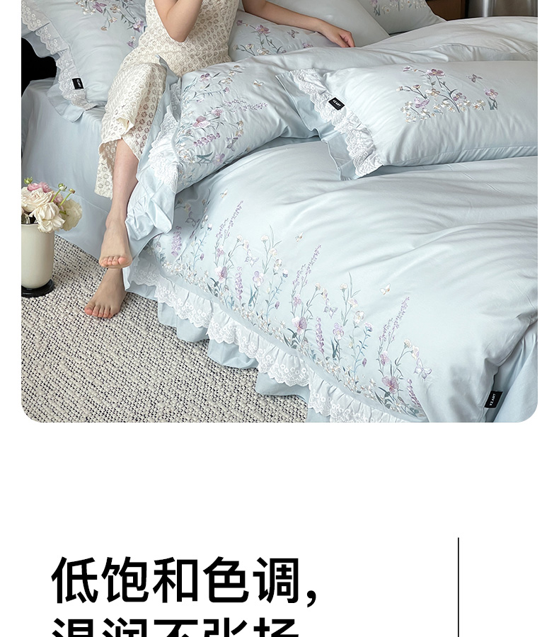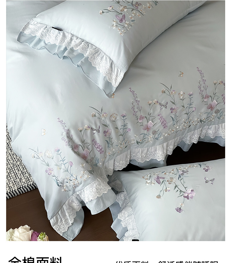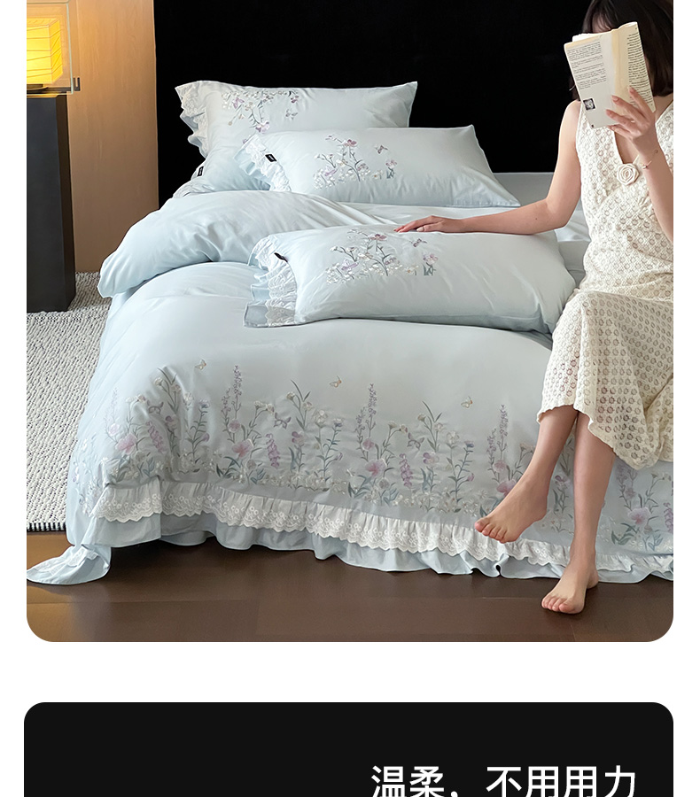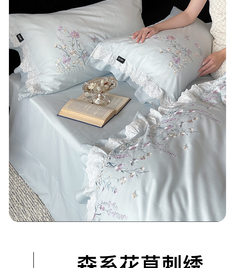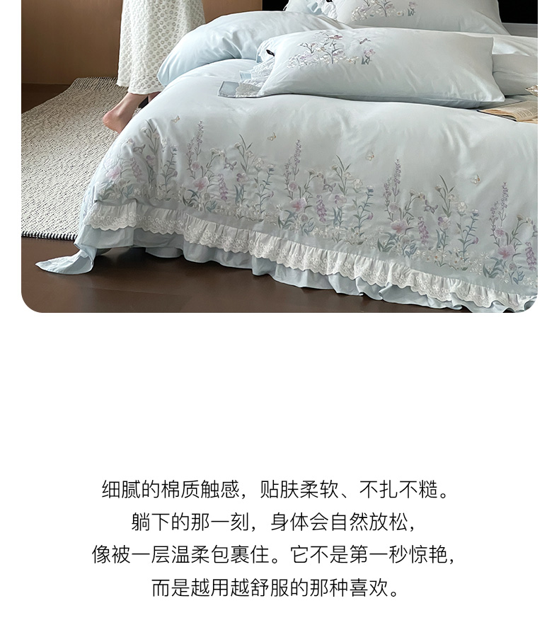 商品名称:卡姿家纺 2026春夏森系小清新刺绣 — 花素印象 花素印象-蓝