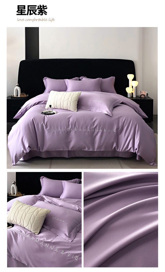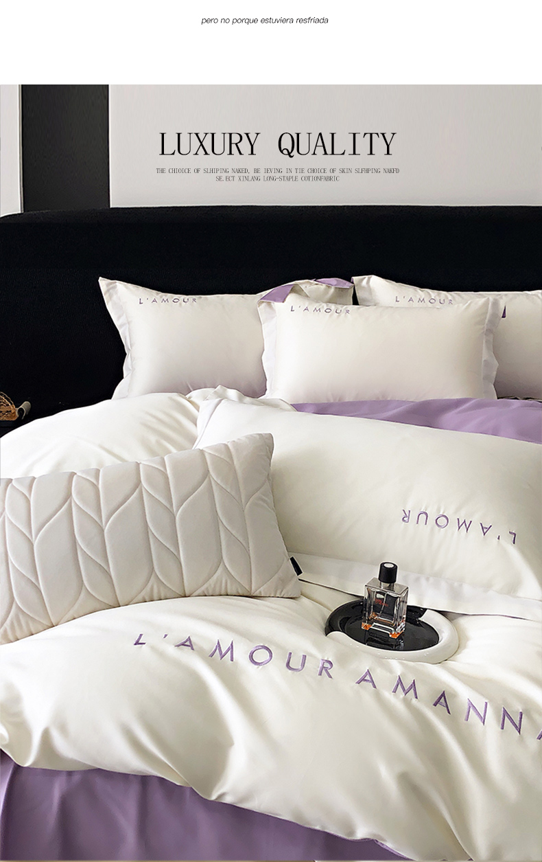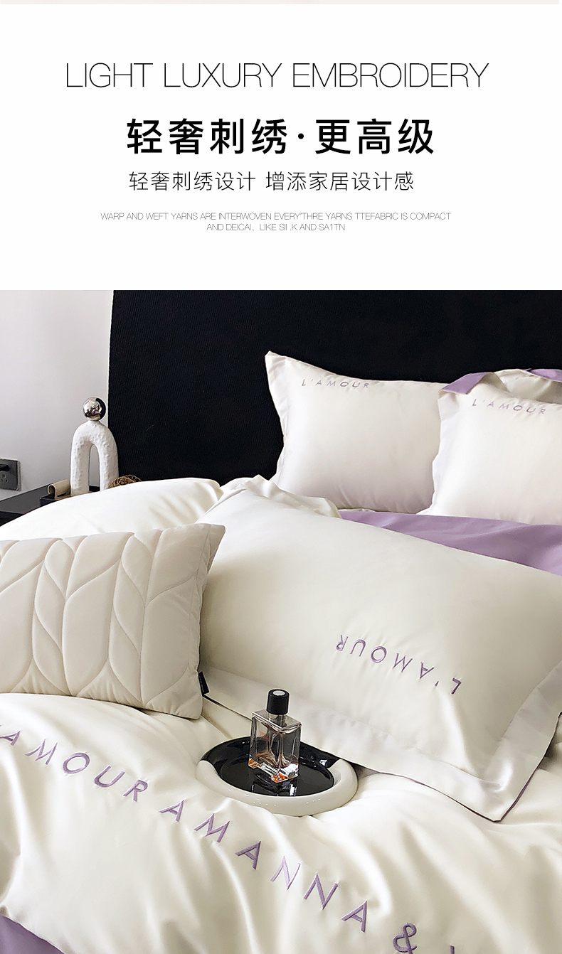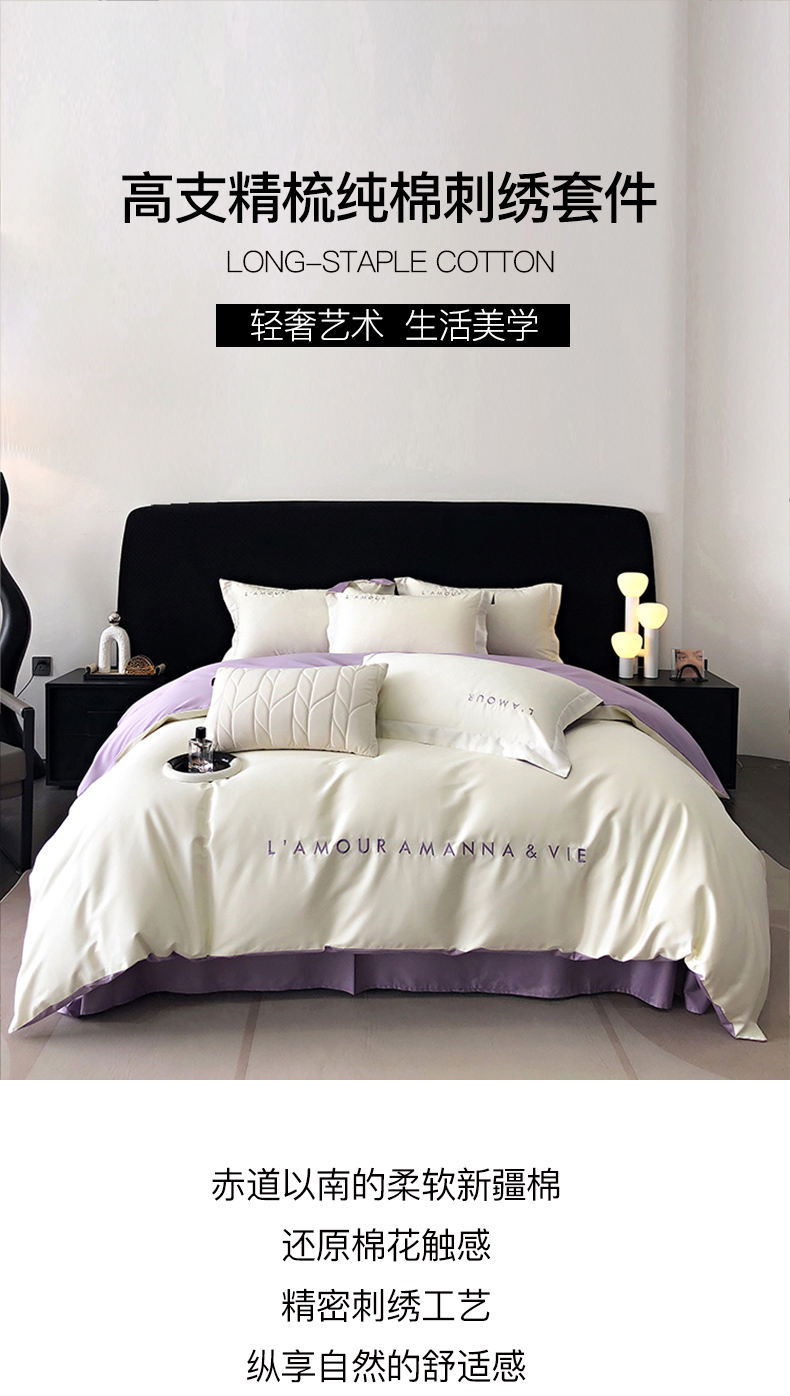 (总)禧澜庭 2026新款高支纯棉全棉斜纹四件套刺绣绣花款轻奢三件套--简爱系列,典雅灰,芙蓉粉,芙蓉粉+浅紫,贵族白+绿色,贵族白+浅紫,贵族白+香槟,莫奈蓝,莫奈蓝+浅灰,拾光绿+香槟,星辰紫