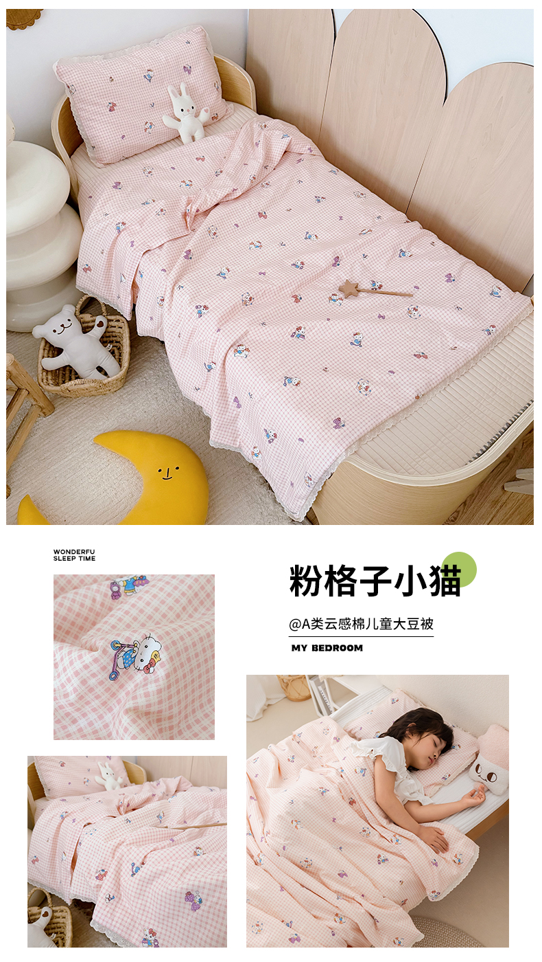 • 91家纺网 家纺一手货源 找家纺 (总)心卓婴童馆 2026春夏新款云感棉四季被大豆被被子被芯,白底星星,彩色南瓜,点点熊,粉豹纹,粉格子小猫,红色樱桃,梦幻乐园,碎花小兔,棕色豹纹