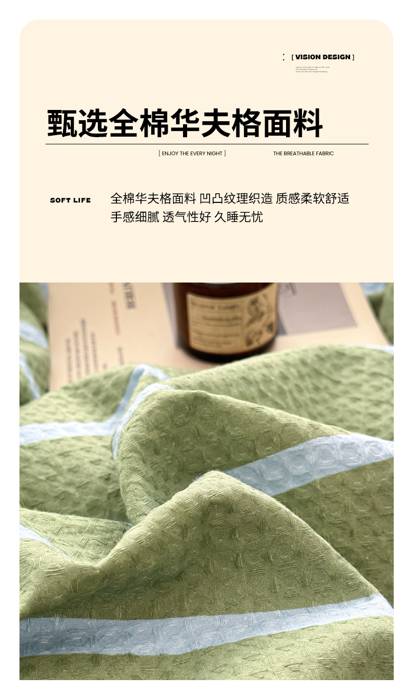 当前位置: 91家纺网 > 商品网购 > 床品套件 > 四件套 > 全棉普通四件套 > 沐辰 2026新款A类华夫格全棉纯棉印花四件套 华夫格-点点