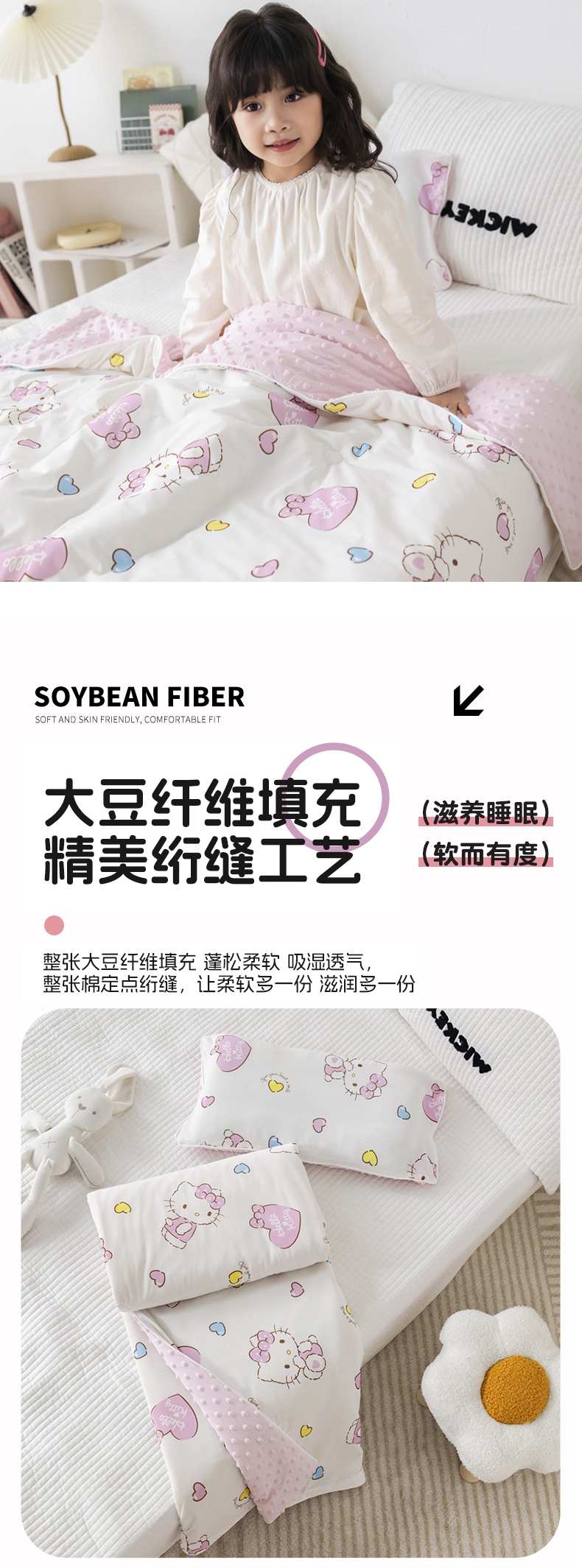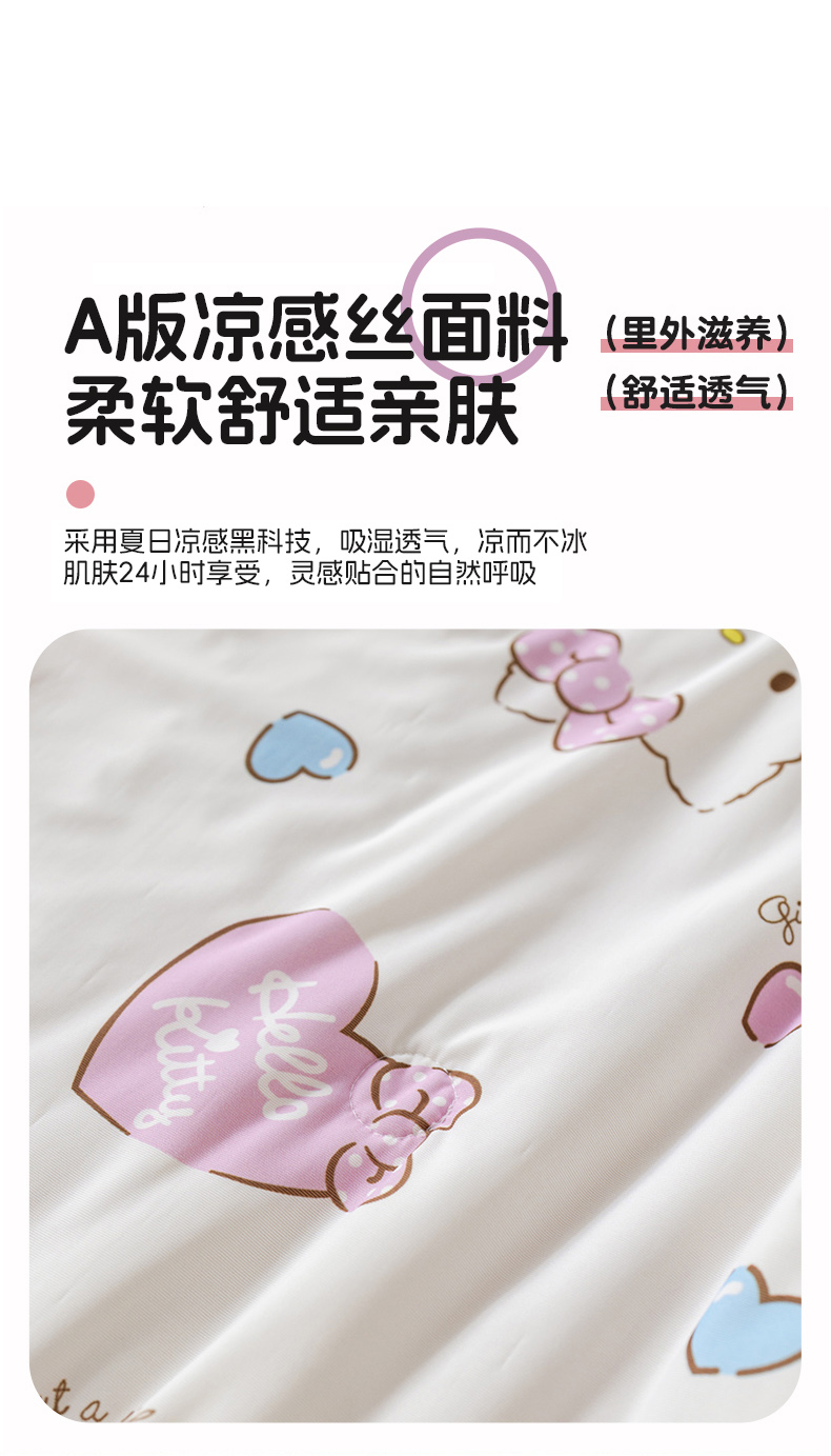 商品名称:心卓婴童馆 2026新款三丽鸥凉感丝冰豆豆被被子被芯-儿童图 kitty猫