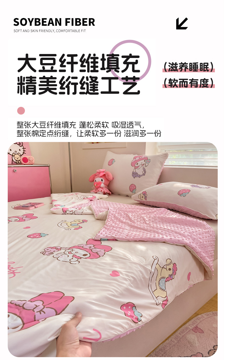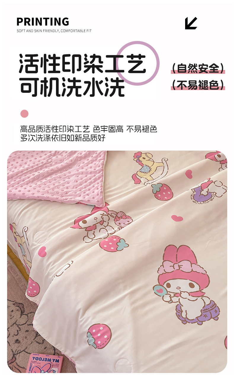 商品名称:心卓婴童馆 2026新款三丽鸥凉感丝冰豆豆被被子被芯-成人图 草莓美乐蒂