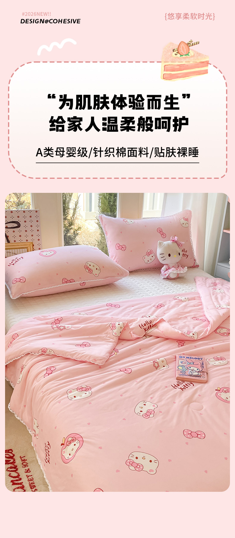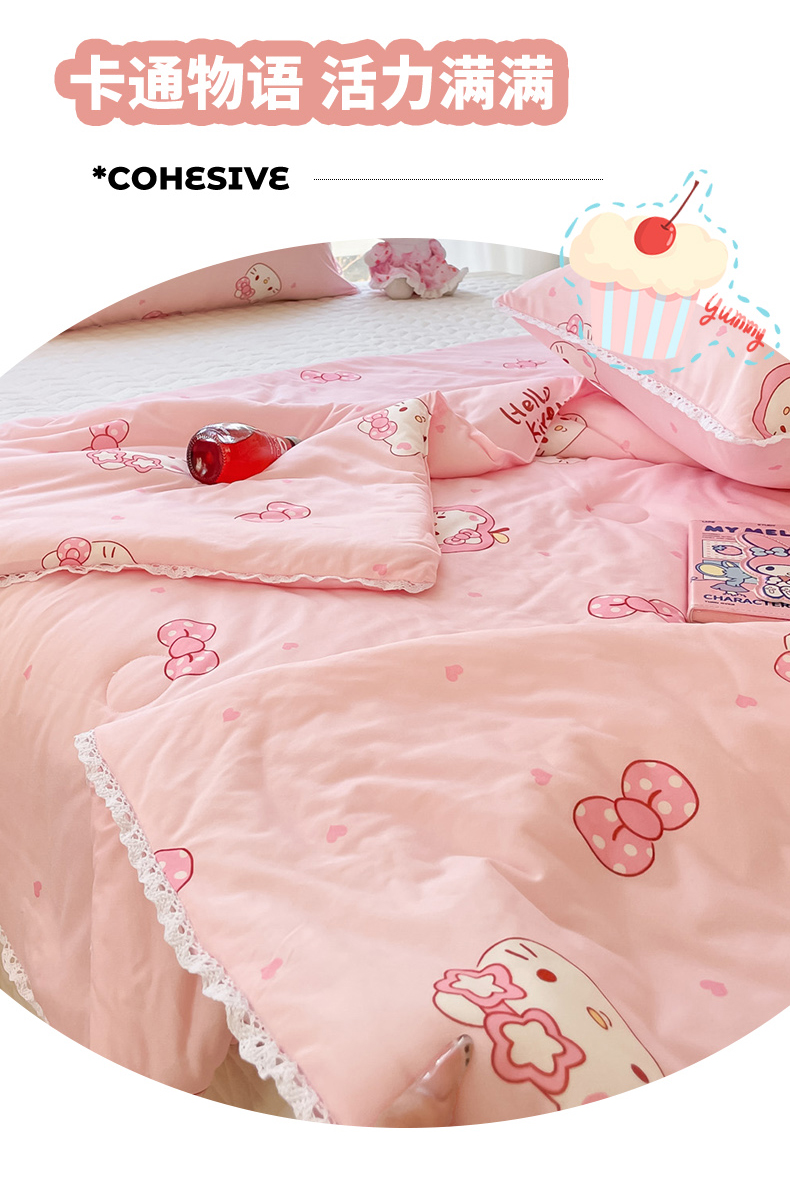 (总)心卓婴童馆 2026新款三丽鸥凉感丝冰豆豆被被子被芯-成人图,kitty猫,爱心库洛米,草莓美乐蒂,独角兽玉桂狗,牛奶库洛米,气球kitty猫,音乐帕恰狗