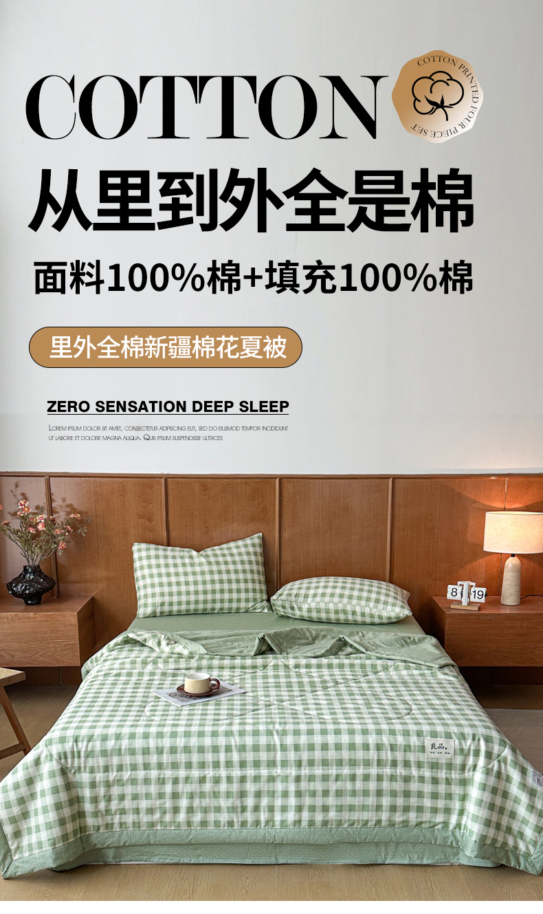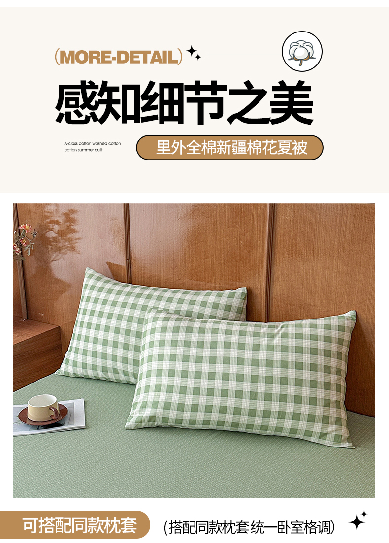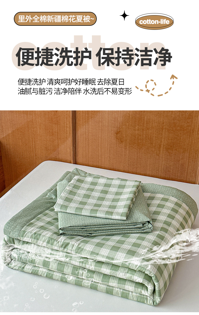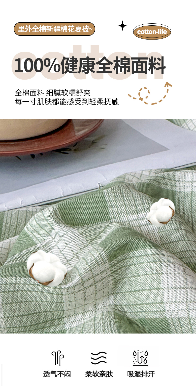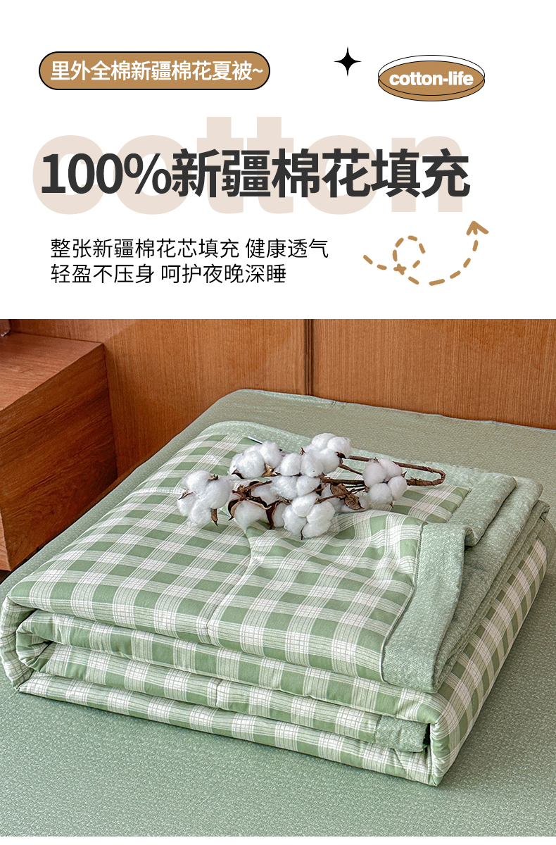 当前位置: 91家纺网 > 商品网购 > 被子 > 夏被 > 尊妙被业 2026新款里外全棉100%新疆棉花夏被被子被芯-简约风 格瑞-绿