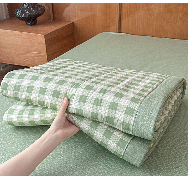 • 91家纺网 家纺一手货源 找家纺 (总)尊妙被业 2026全棉色织水洗全棉棉花夏被 被子被芯 夏被四件套(格子款),贝拉咖,爱格,爱格兰,爱格绿,潮格白,粉小格,咖小格,蓝小格,绿小格