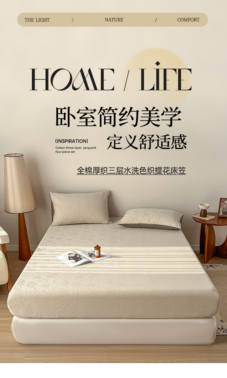 (总)女子家纺 2026新款全棉厚织三层水洗色织提花床笠