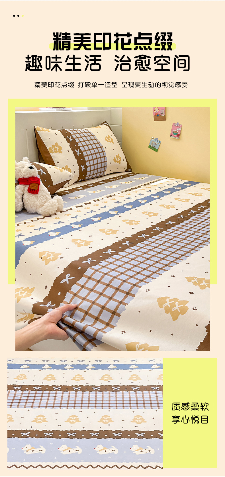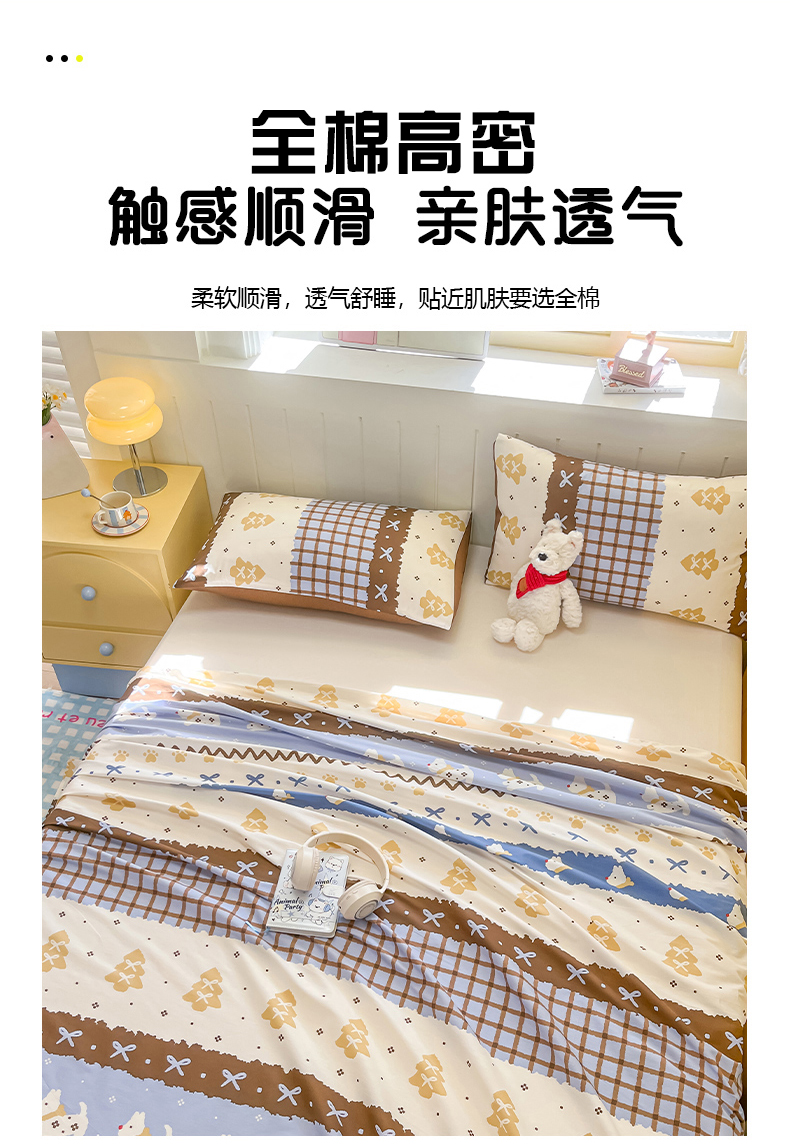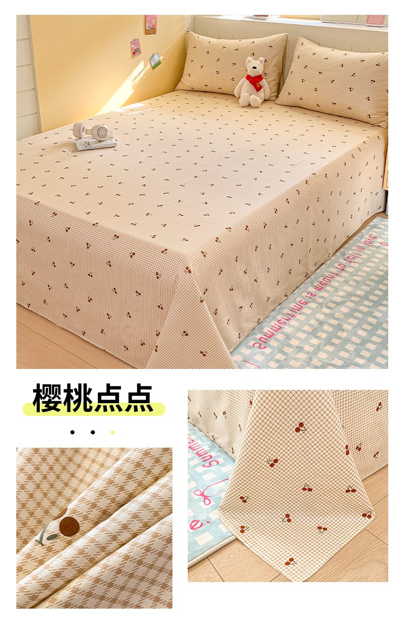 (总)瑞莱 2026新款纯棉全棉单品印花卡通床笠枕套系列,圣诞狗,呆萌企鹅,繁星点点,蝴蝶结猫咪,千禧猫,软萌萌,童话,五线格,仙子,樱桃点点,樱桃格,樱桃猫咪,圆点点,绽放