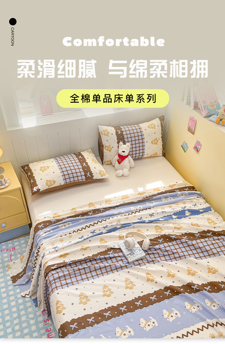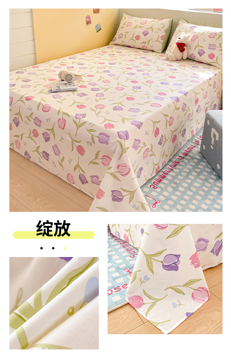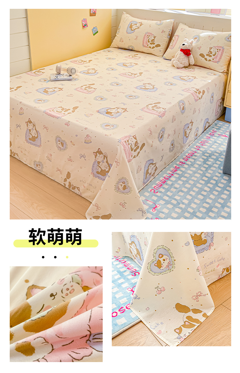 (总)瑞莱 2025新款开学季纯棉13372单品床单床笠,仙草,蘑菇屋,班尼狗,彼得兔,红色郁金香,漫画家,皮皮狗,咋肥事鸭,彩虹恐龙,赫本花,蓝爱心,少女心,桃桃女孩,(纯棉床单)