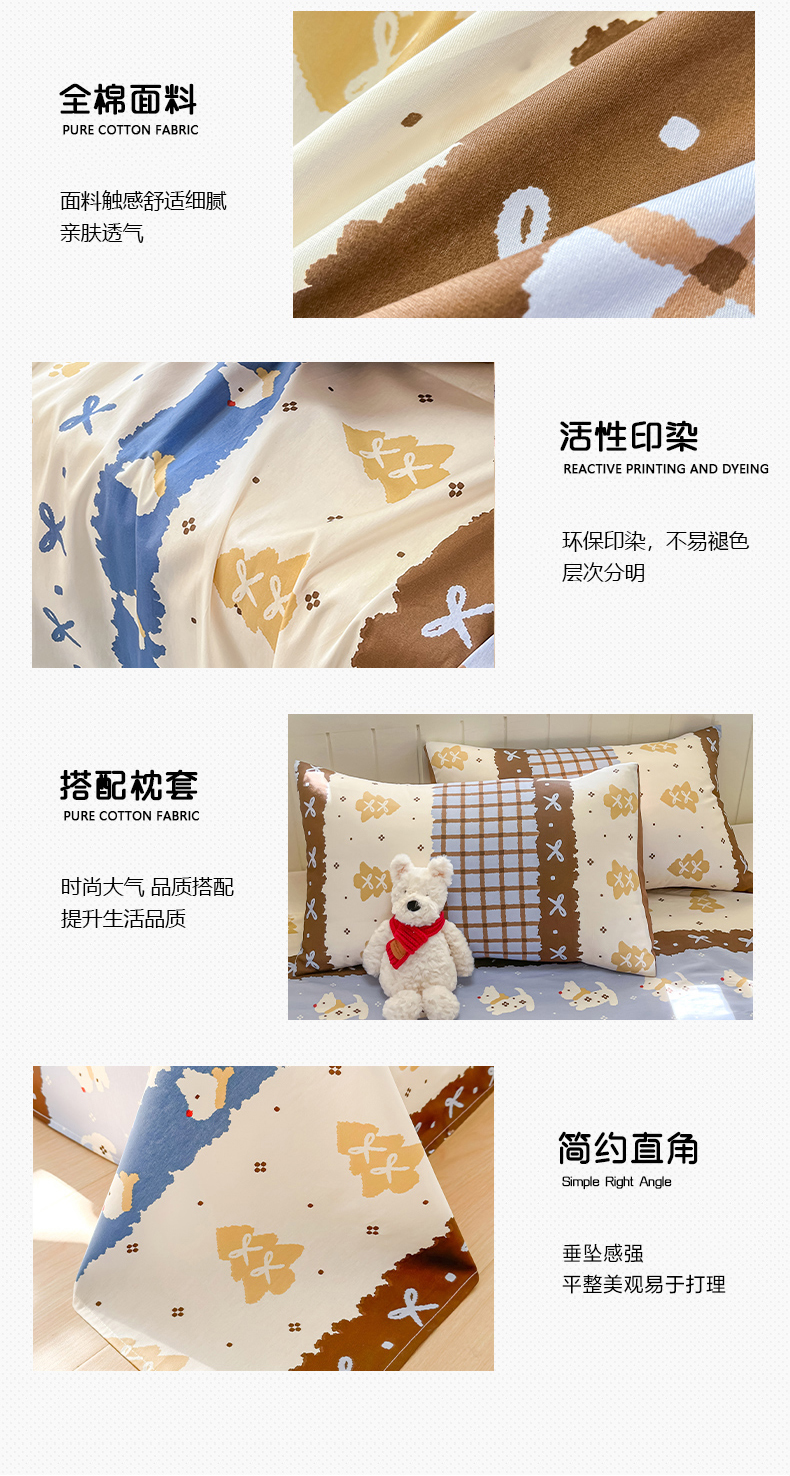 商品名称:瑞莱 2026新款纯棉全棉单品印花卡通床单枕套系列 圣诞狗