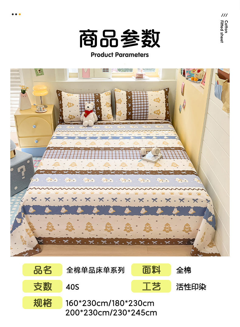 (总)瑞莱 2026新款纯棉全棉单品印花卡通床单枕套系列,软萌萌,呆萌企鹅,繁星点点,蝴蝶结猫咪,千禧猫,圣诞狗,童话,五线格,仙子,樱桃点点,樱桃格,樱桃猫咪,圆点点,绽放