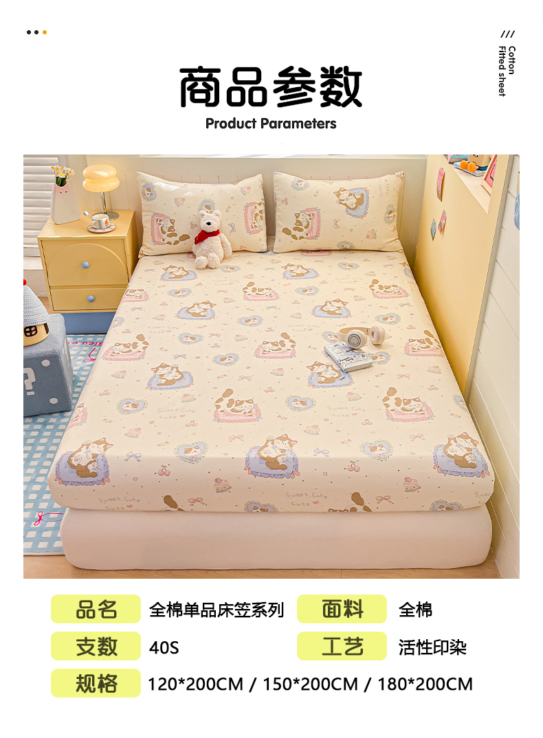 (总)瑞莱 2026新款纯棉全棉单品印花卡通床笠枕套系列,圣诞狗,呆萌企鹅,繁星点点,蝴蝶结猫咪,千禧猫,软萌萌,童话,五线格,仙子,樱桃点点,樱桃格,樱桃猫咪,圆点点,绽放