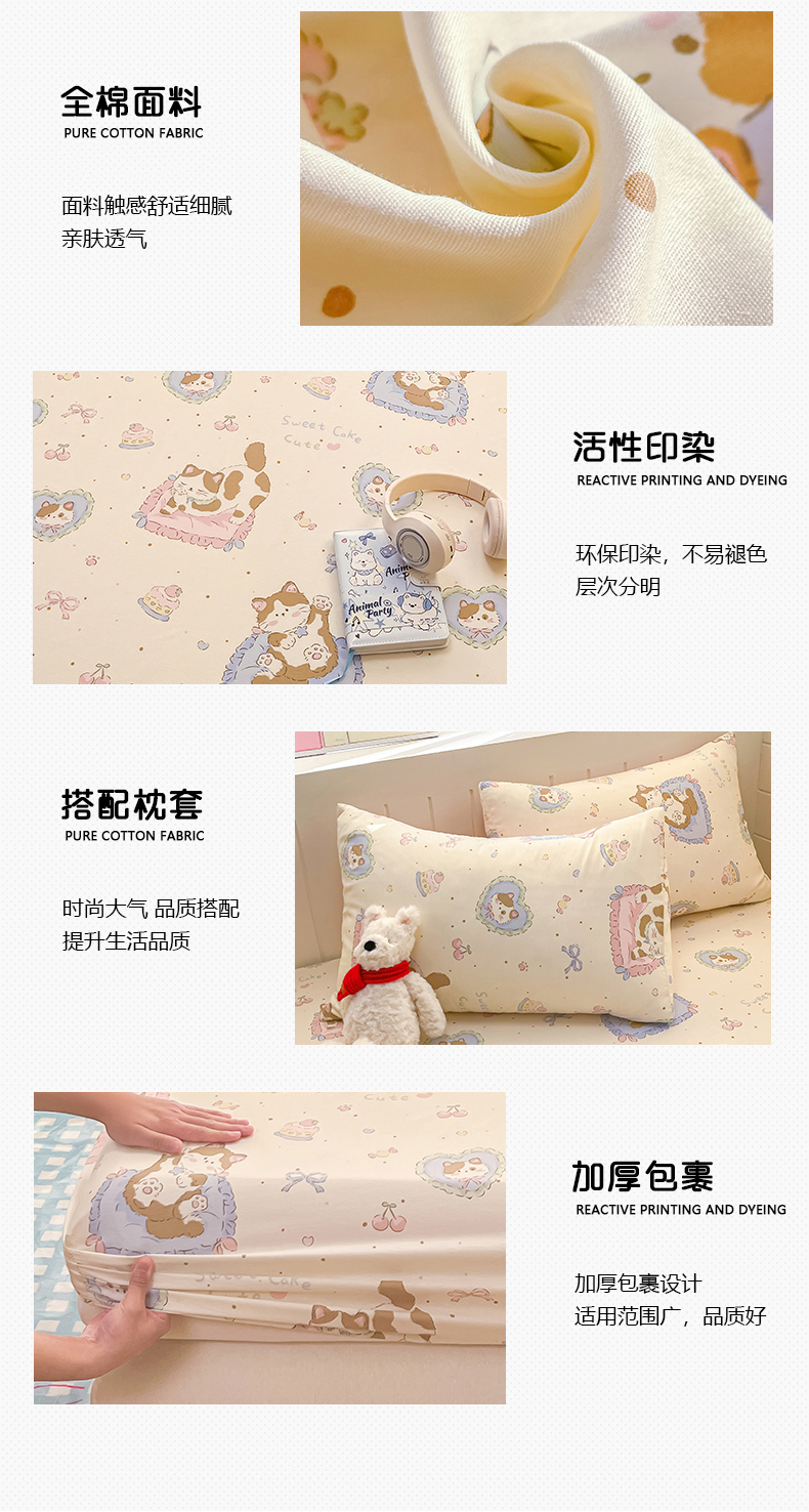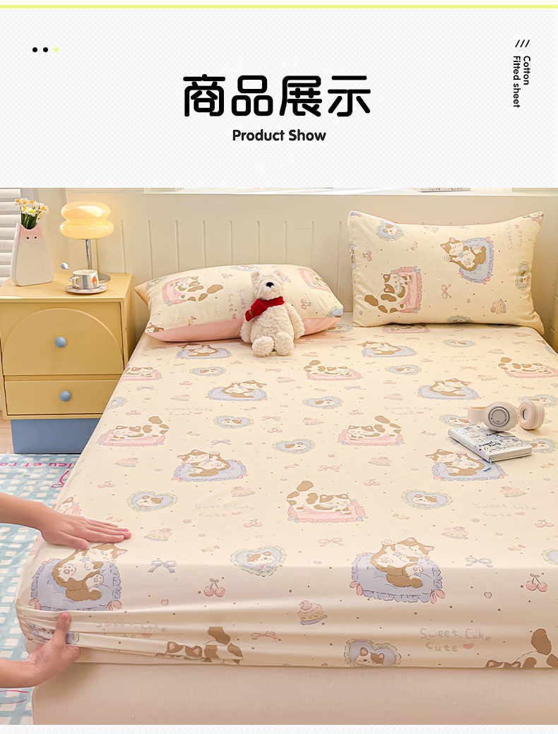 • 91家纺网 家纺一手货源 找家纺 瑞莱 2026新款纯棉全棉单品印花卡通床笠枕套系列 软萌萌