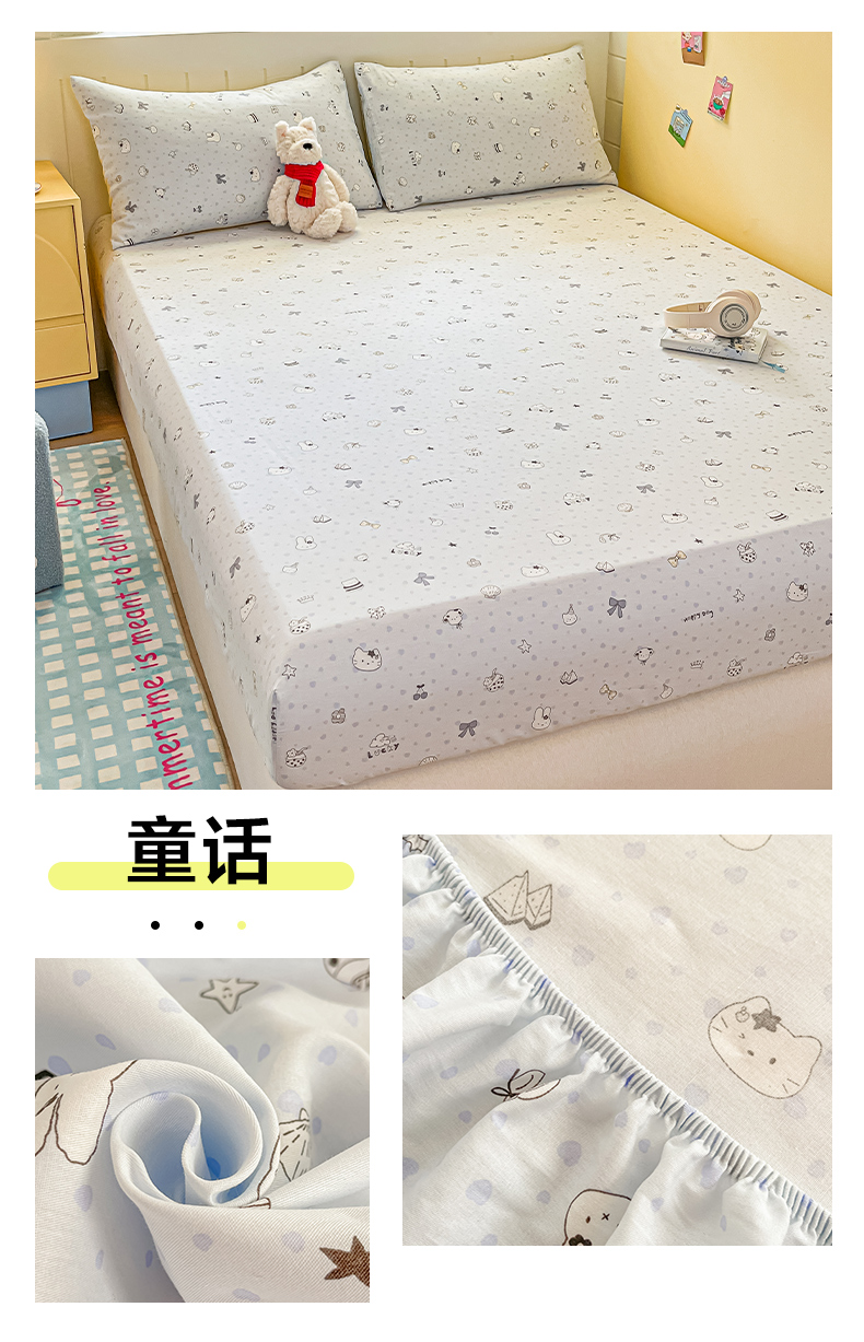 瑞莱 2026新款纯棉全棉单品印花卡通床笠枕套系列 软萌萌