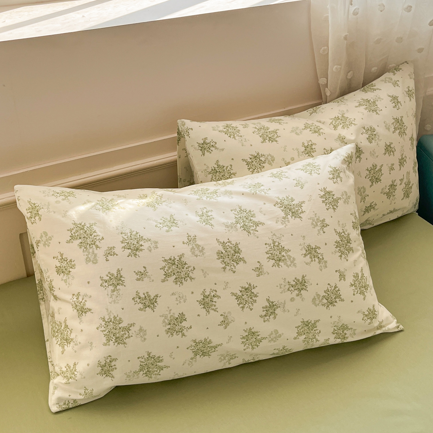 商品名称:柠馨 2026春夏新款13372全棉纯棉印花单枕套 枕套单件-芙拉系列 青筠