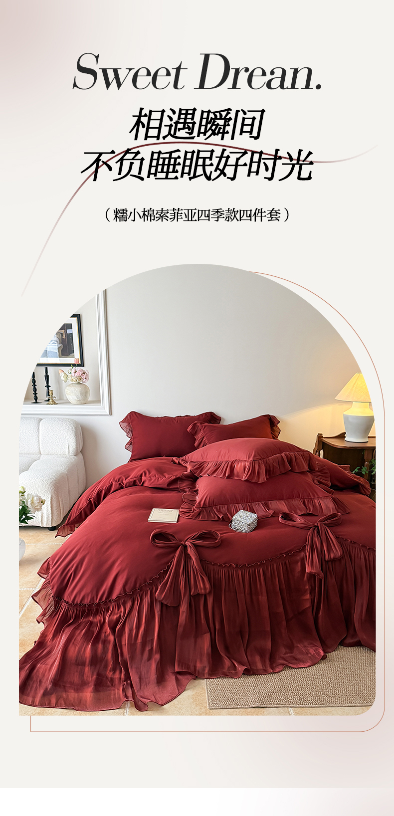 (总)吾欢心 2026春夏新款公主风索菲亚四件套,索菲亚红,索菲亚白,索菲亚粉,索菲亚黄,索菲亚蓝,索菲亚绿,索菲亚紫