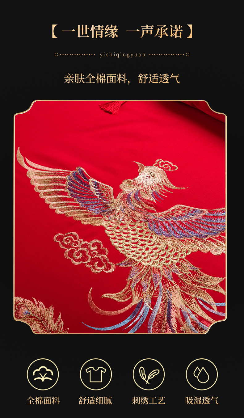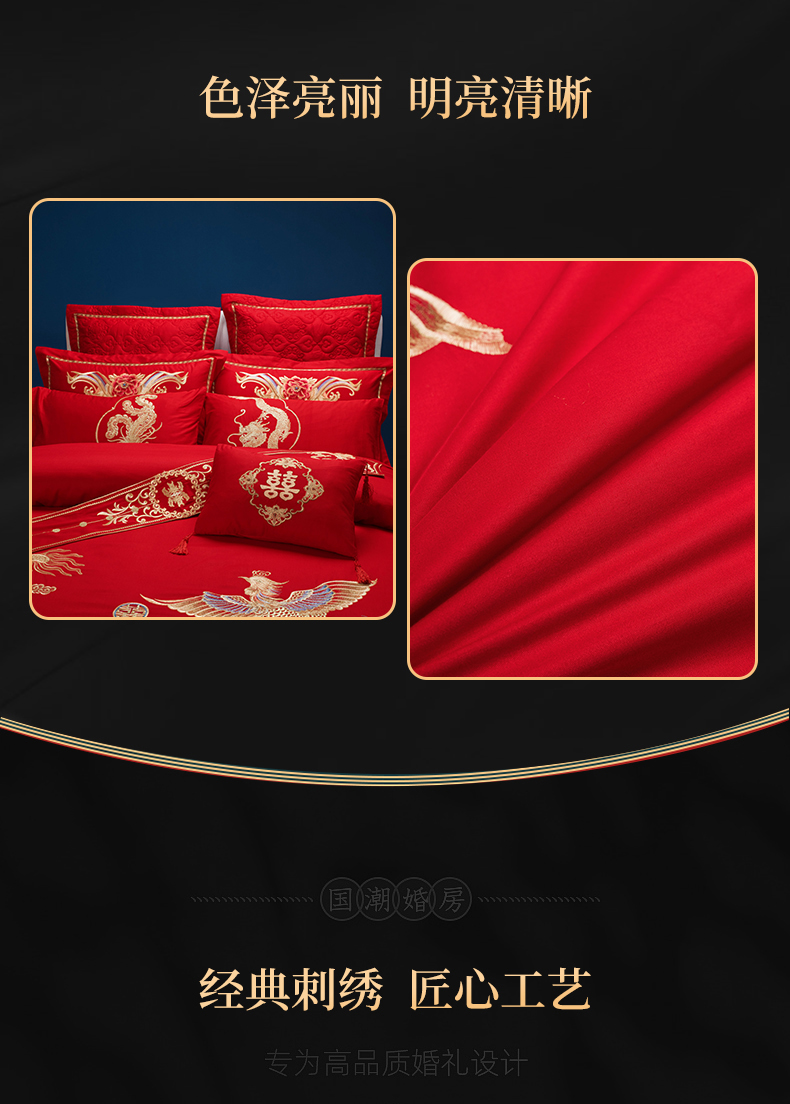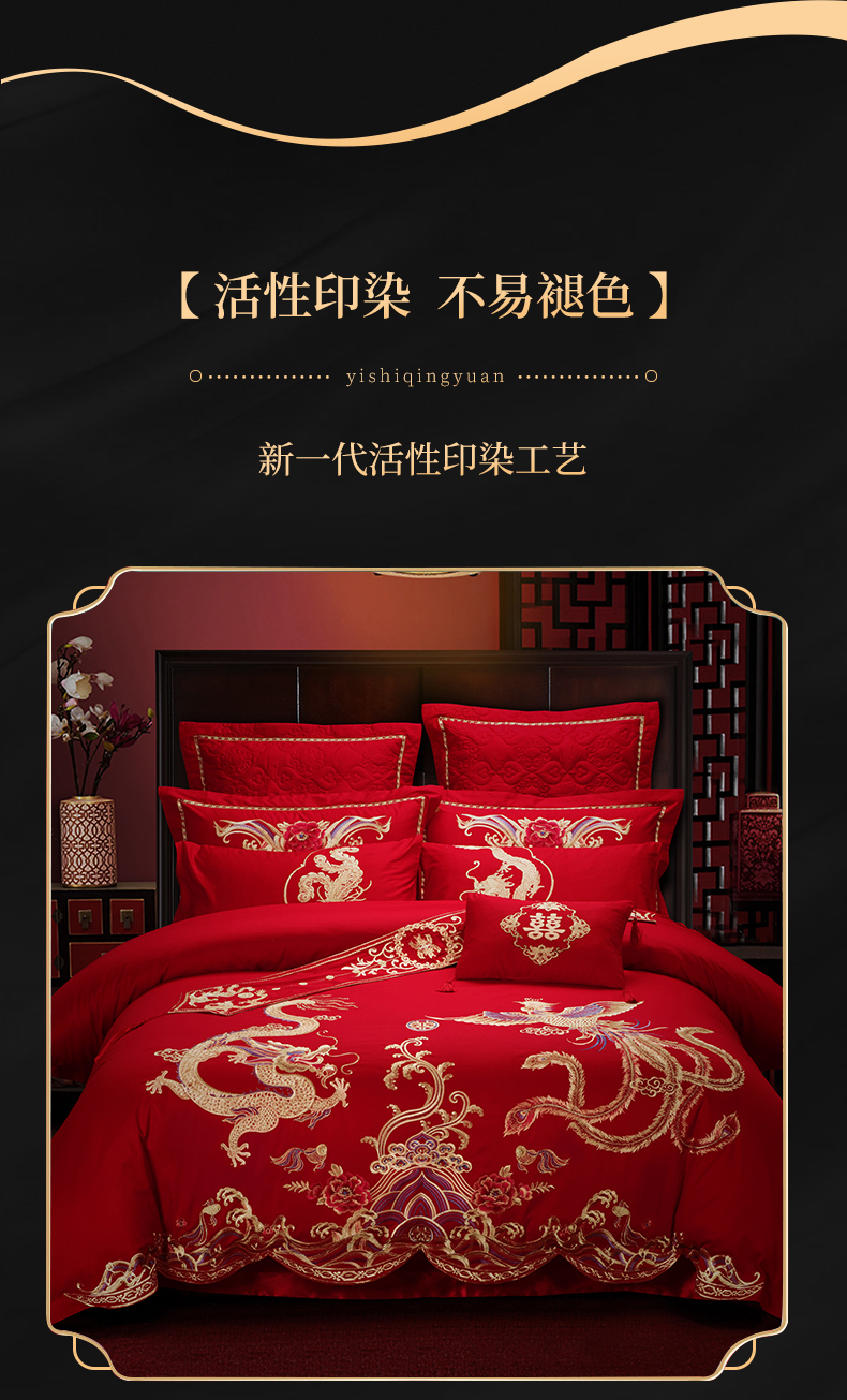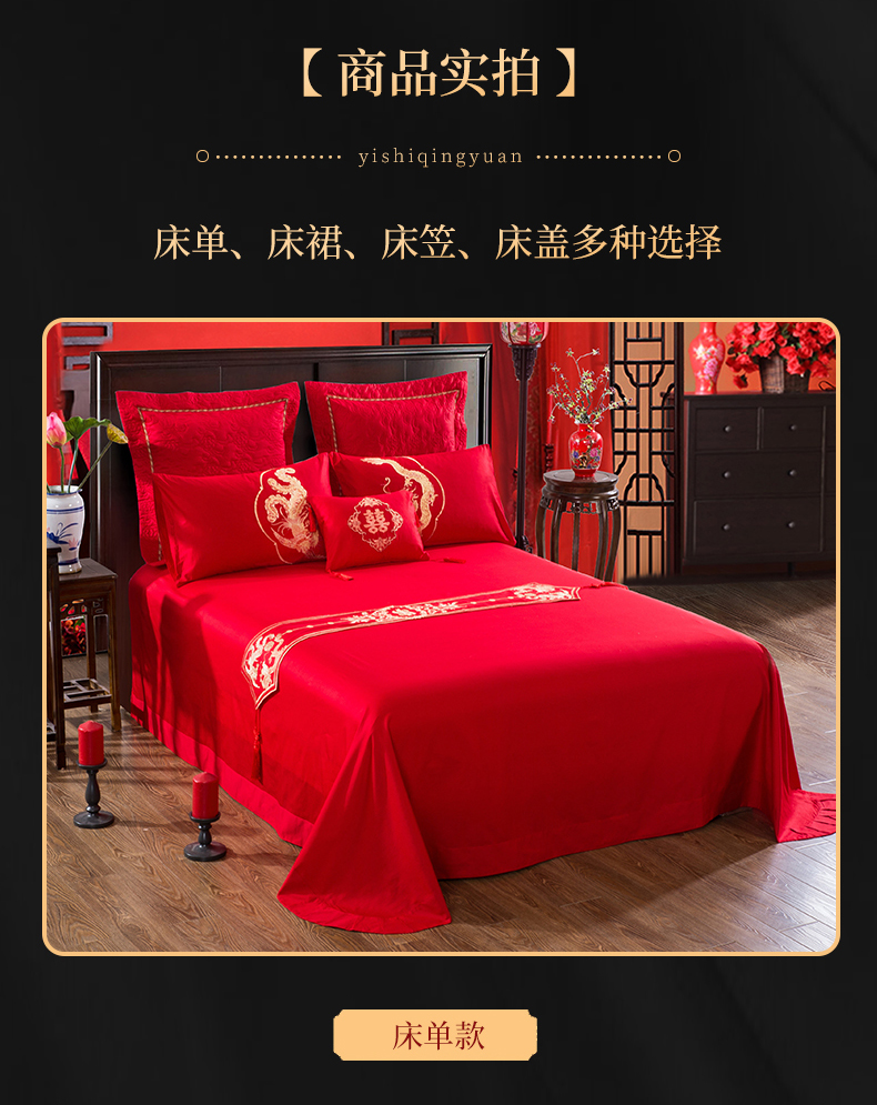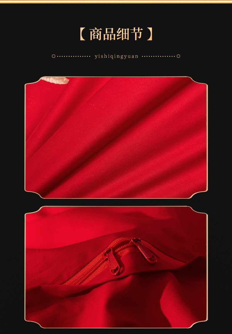 当前位置: 91家纺网 > 商品网购 > 床品套件 > 四件套 > 婚庆四件套 > 慕她家纺 慕她畅销款全棉纯棉婚庆四件套大红色刺绣结婚床上用品 盘龙舞凤