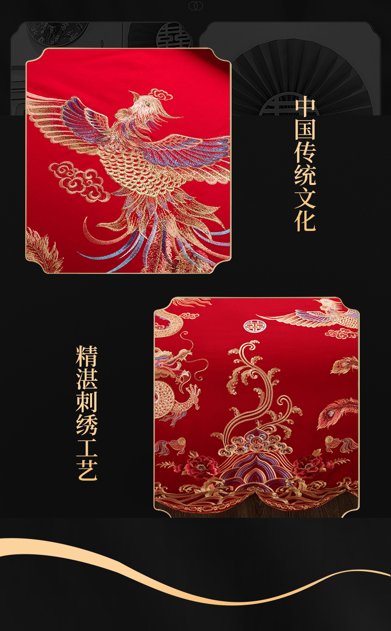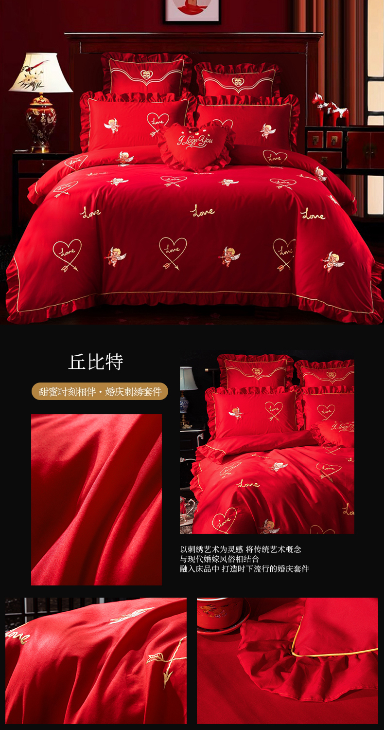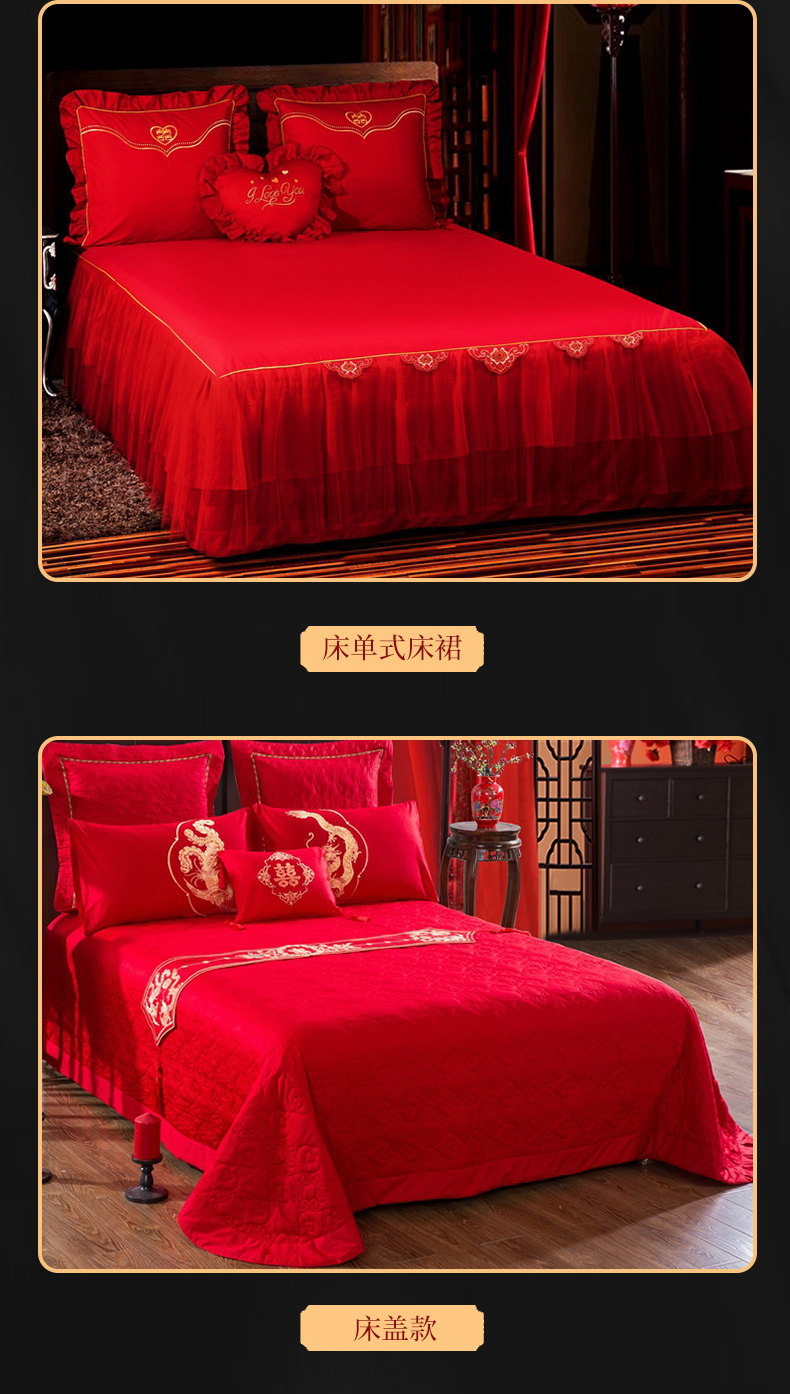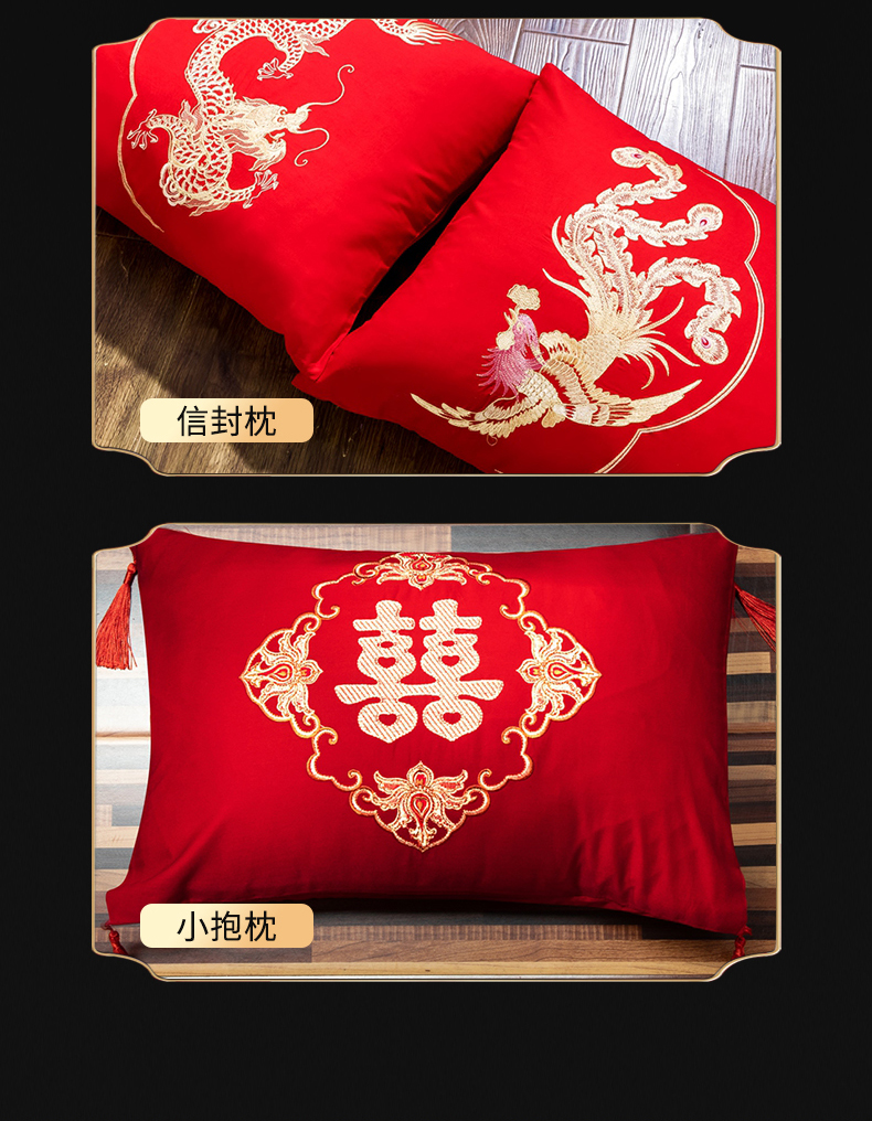 当前位置: 91家纺网 > 商品网购 > 床品套件 > 四件套 > 婚庆四件套 > 慕她家纺 慕她畅销款全棉纯棉婚庆四件套大红色刺绣结婚床上用品 盘龙舞凤