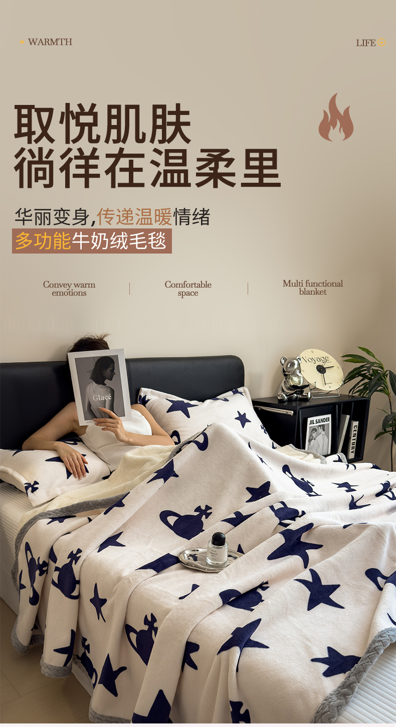 商品名称:布凡家居 2026新款中古无印风230克牛奶绒复合毛毯毯子 紫韵条纹