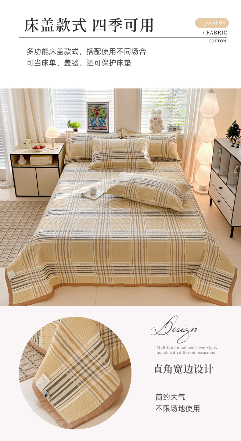 (总)梦精灵家纺 2026新款全棉床盖单件色织水洗棉绗缝夹棉床单 四季通用榻米防滑学生宿舍单人被套枕套,浮影紫,米兰红,米兰咖,米兰米,木槿黑,西蒙-蓝,西蒙-黄,鹅黄,利奥-蓝,桔红,利奥-红,幻影绿,利奥-绿,维多利亚-米,棕咖,可颂-咖,罗恩-灰,左岸-粉,雅灰