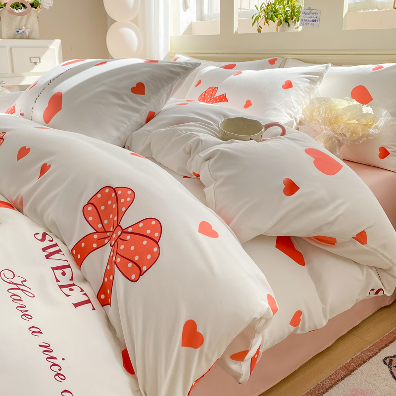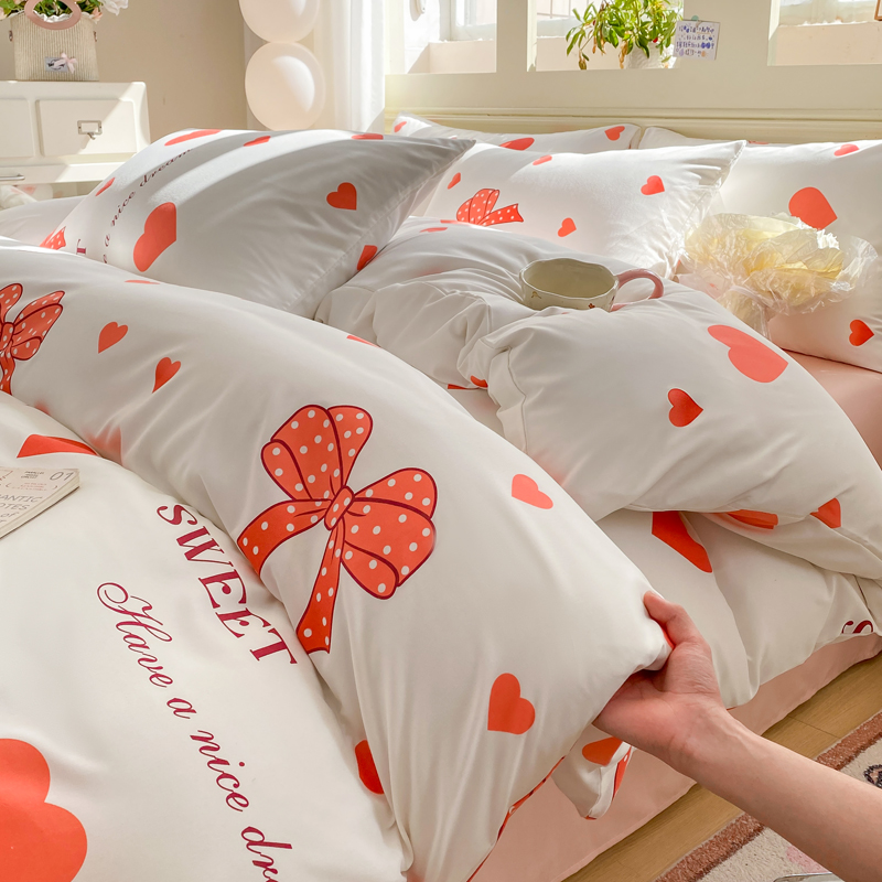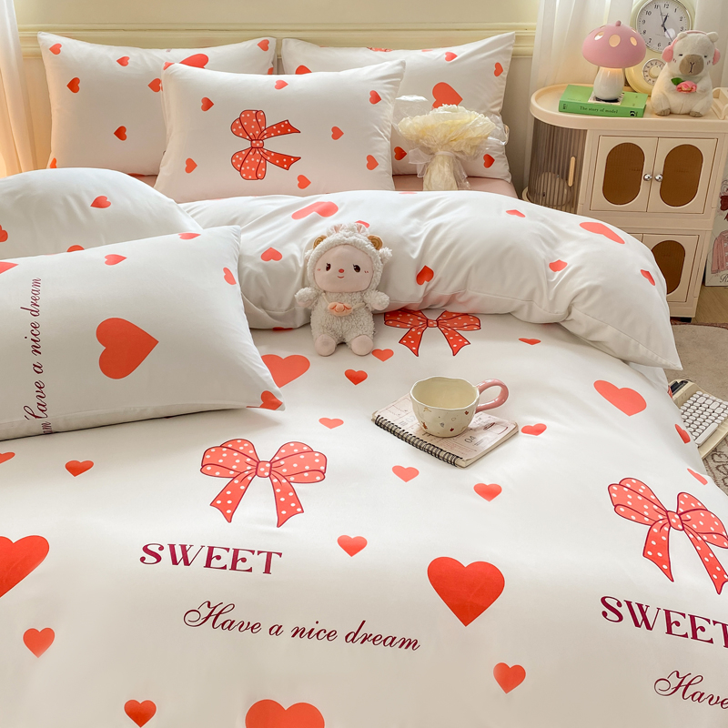 当前位置: 91家纺网 > 商品网购 > 床品套件 > 四件套 > 水洗棉四件套 > 朵朵家纺 2026新款水洗印花床单床笠款三四件套学生三四件套 甜心结