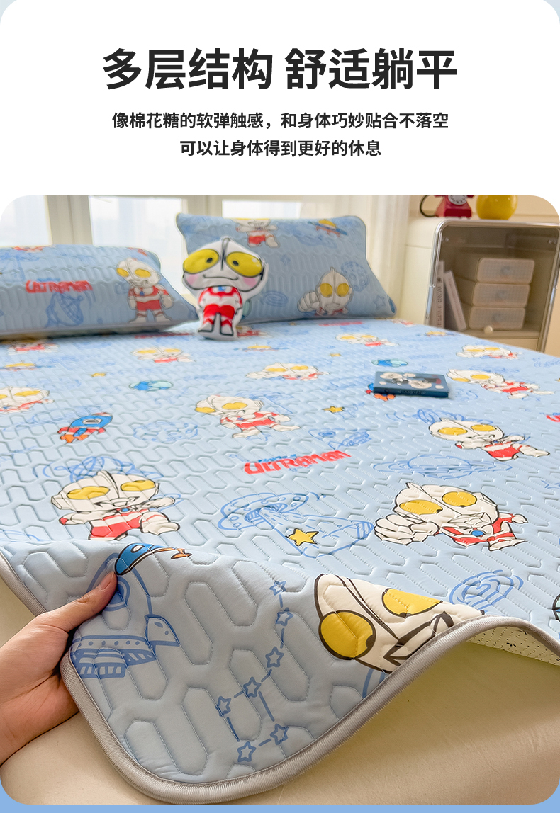 商品名称:兄弟坊 2026新款正版授权卡通乳胶凉席软凉席席子 奥特曼蓝