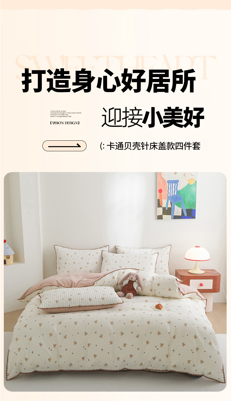 商品名称:(总)庭笙 2026新款卡通贝壳针两面可用夹棉床盖床盖四件套