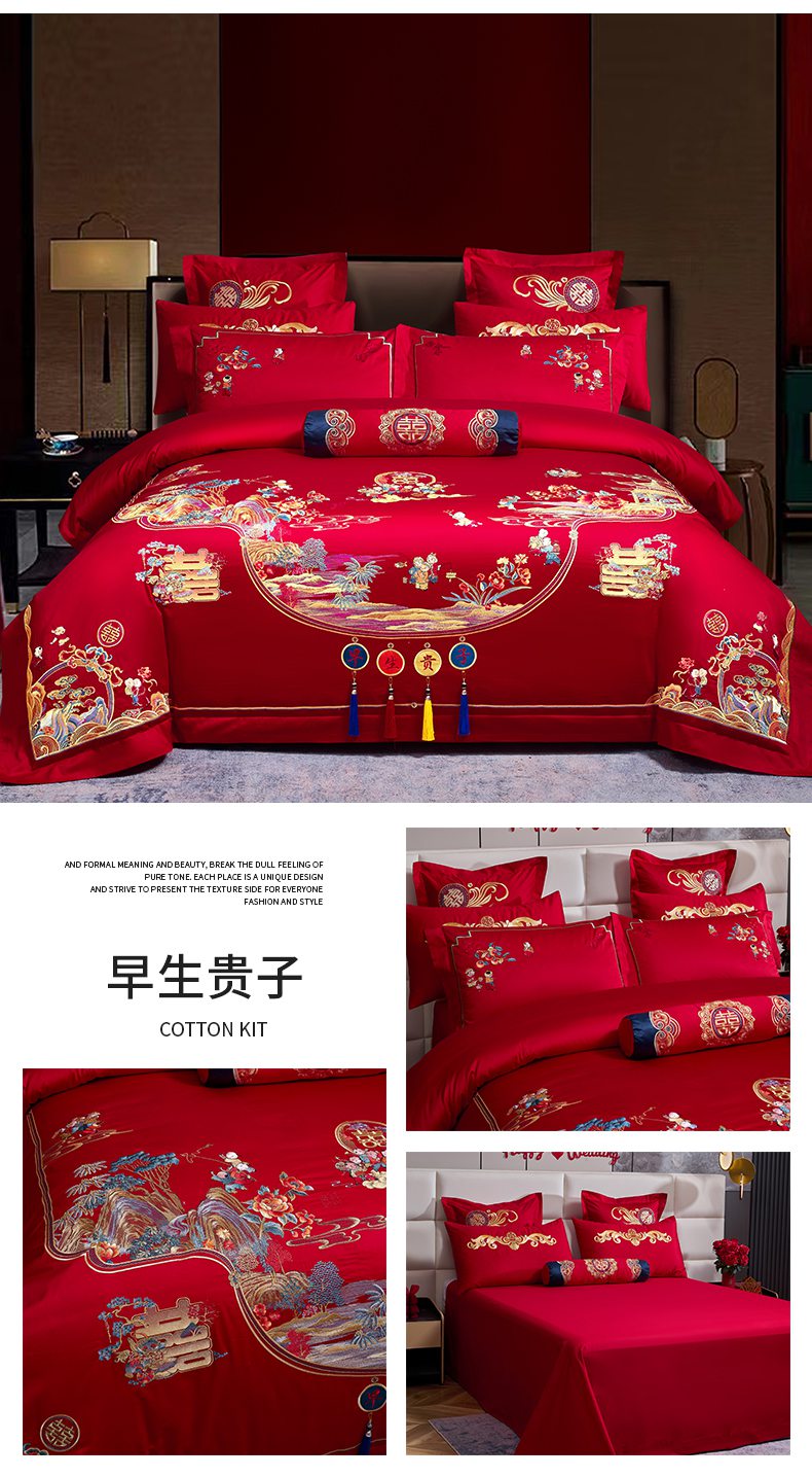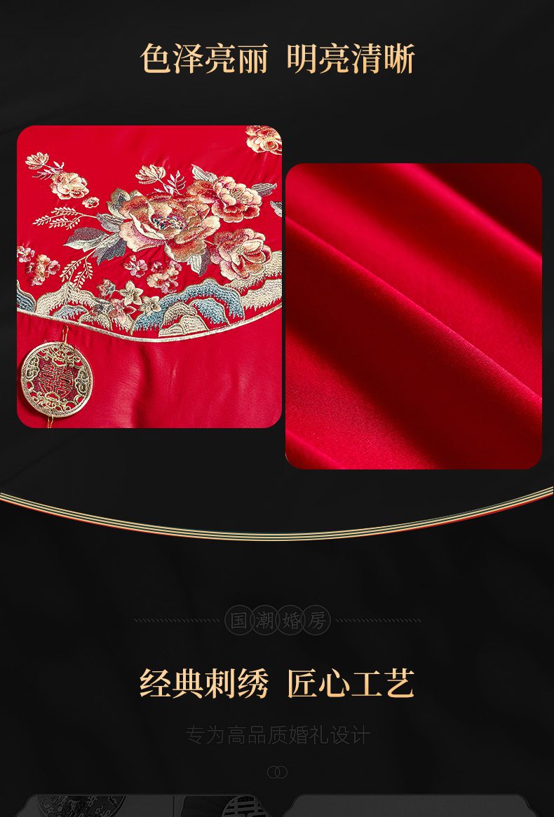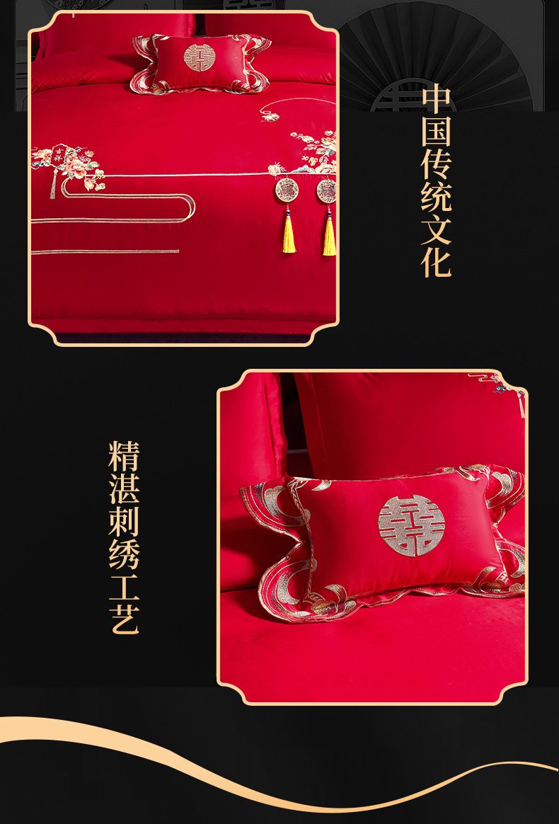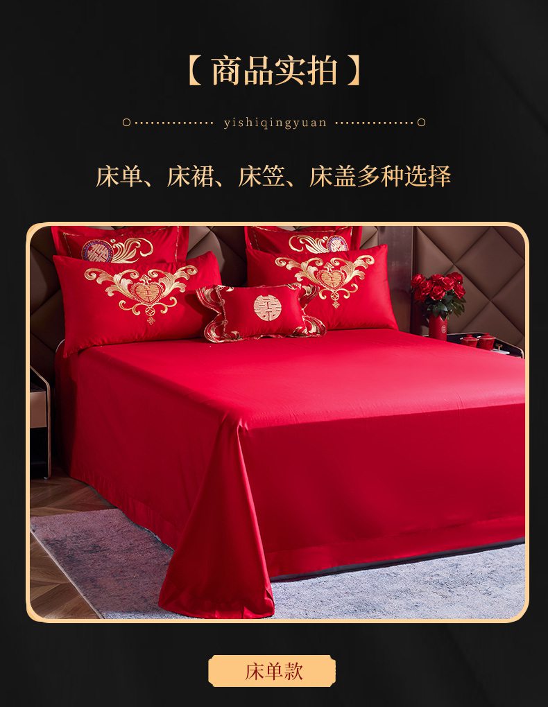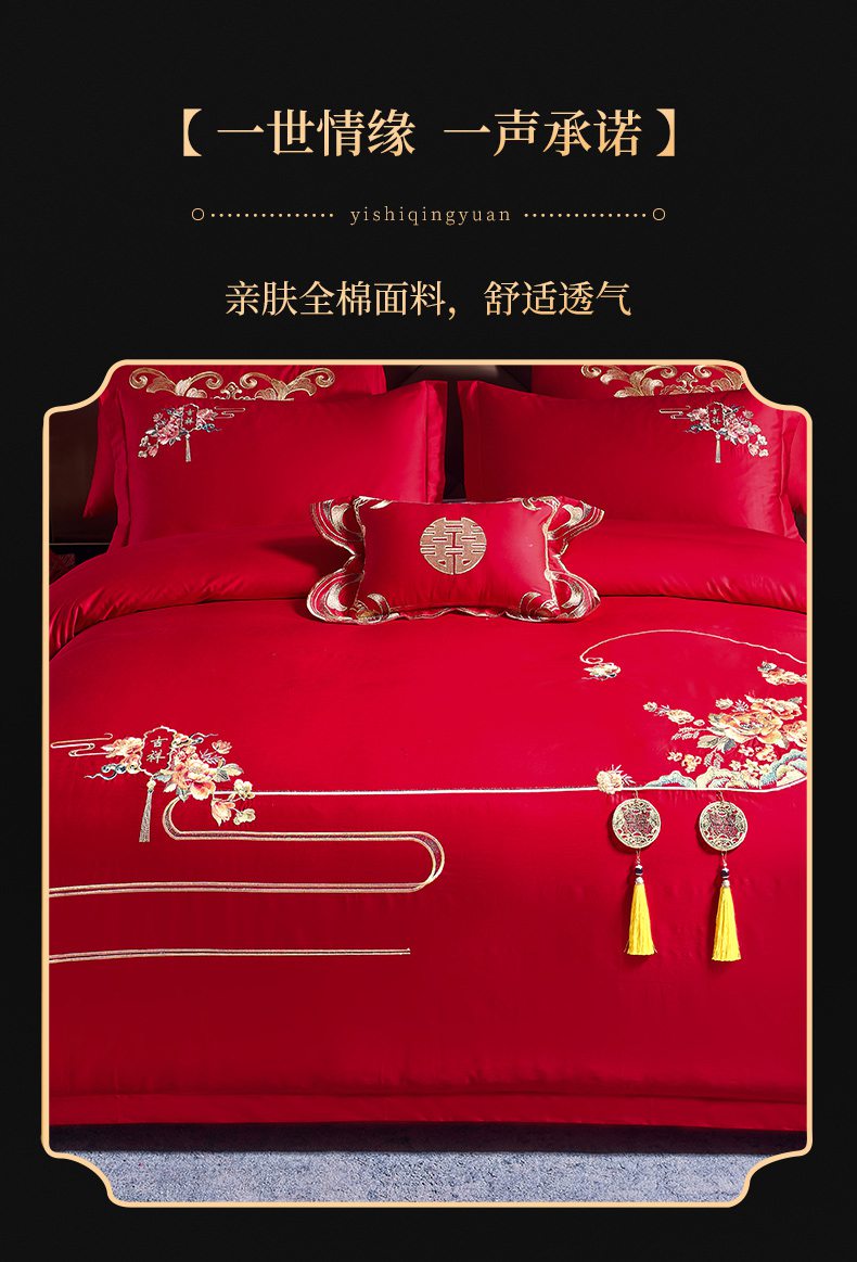 当前位置: 91家纺网 > 商品网购 > 床品套件 > 四件套 > 婚庆四件套 > 慕她家纺 2026慕她大花工艺款全棉纯棉婚庆四件套大红色刺绣结婚床上用品 喜嫁