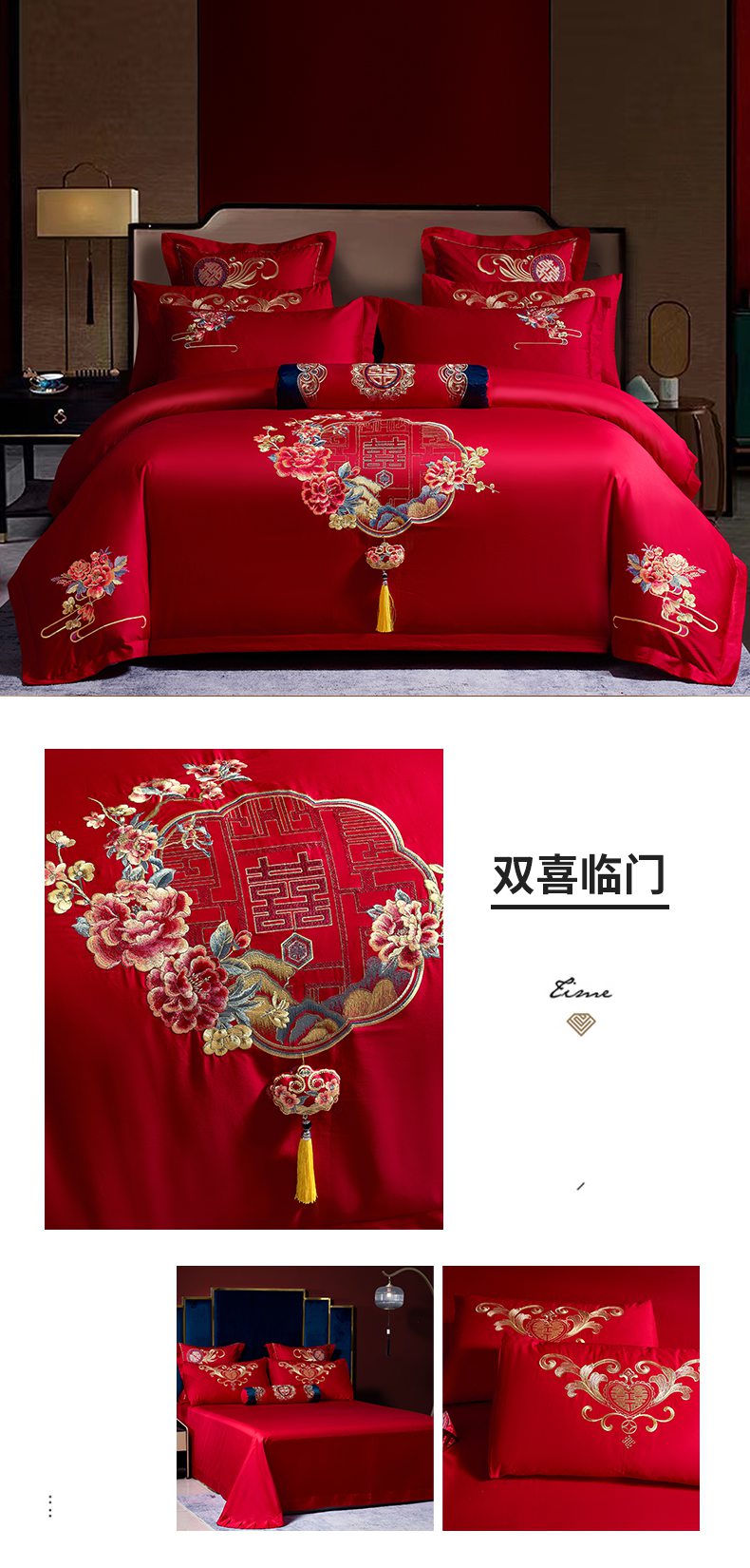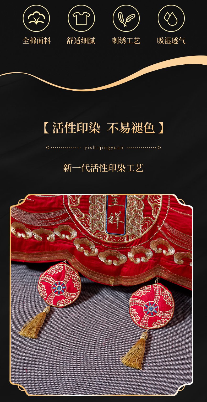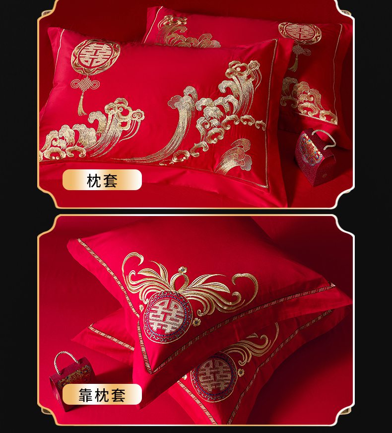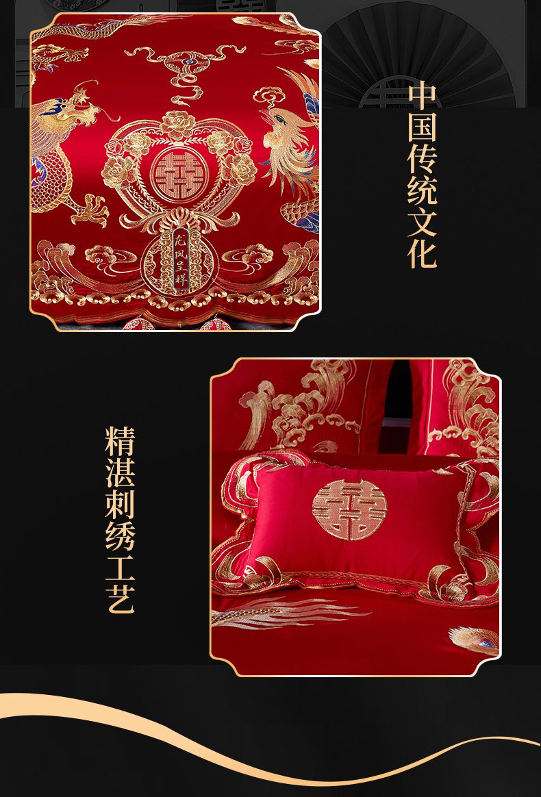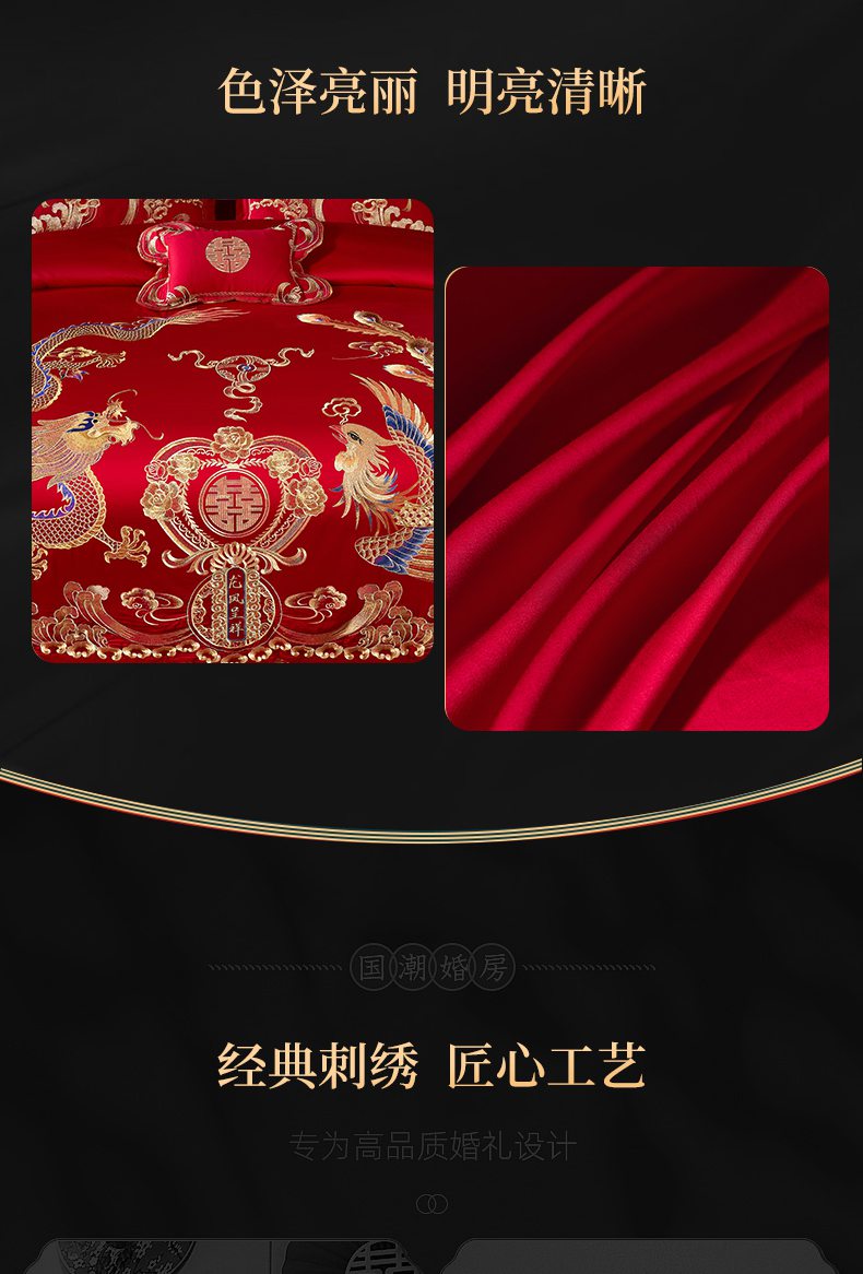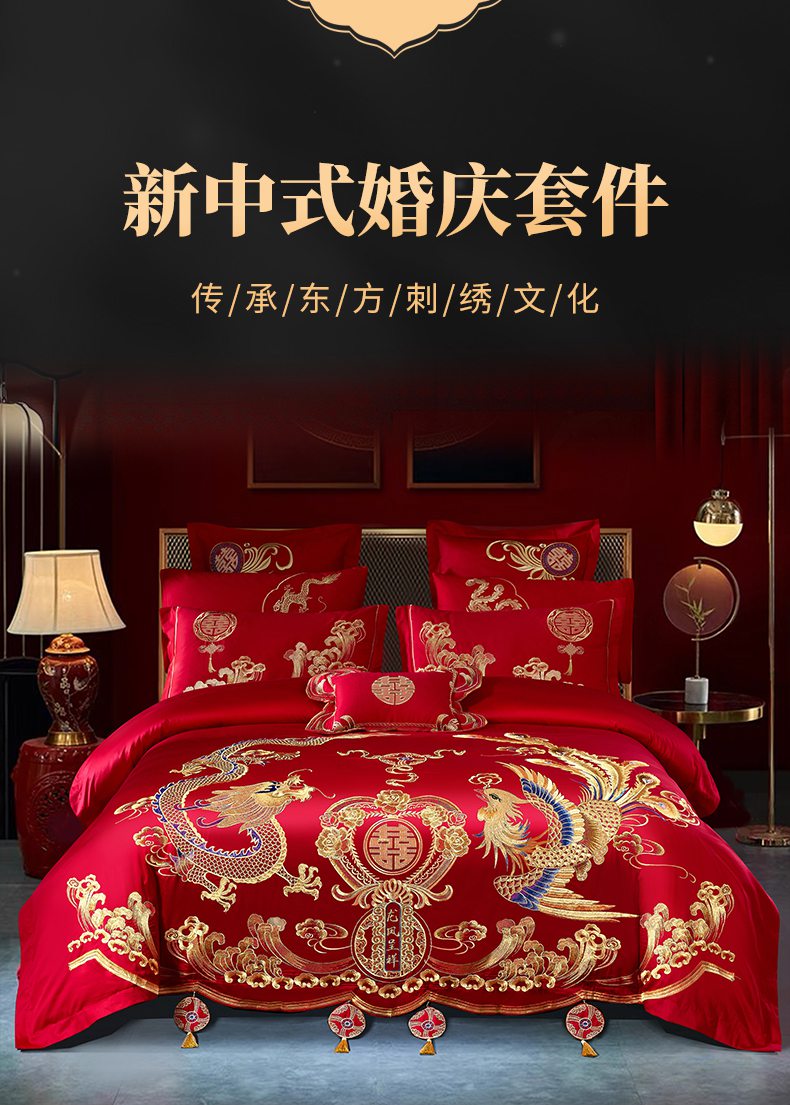 当前位置: 91家纺网 > 商品网购 > 床品套件 > 四件套 > 婚庆四件套 > 慕她家纺 2026慕她大花工艺款全棉纯棉婚庆四件套大红色刺绣结婚床上用品 龙凤呈祥