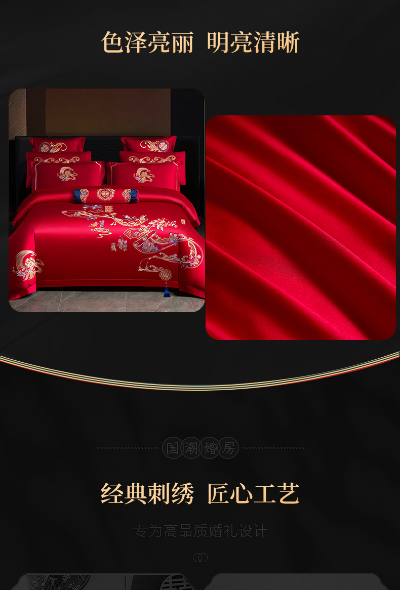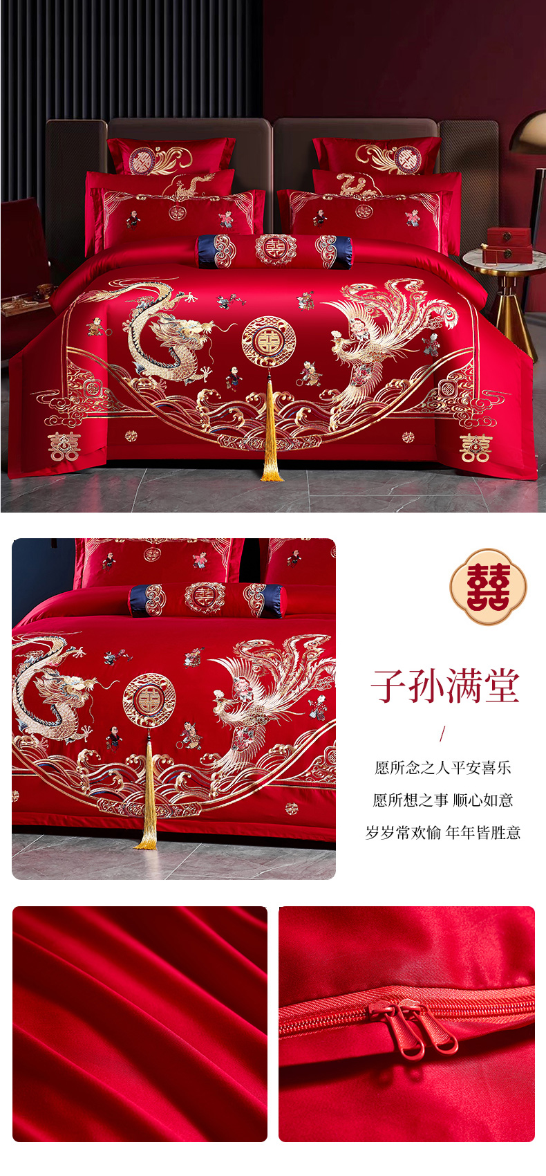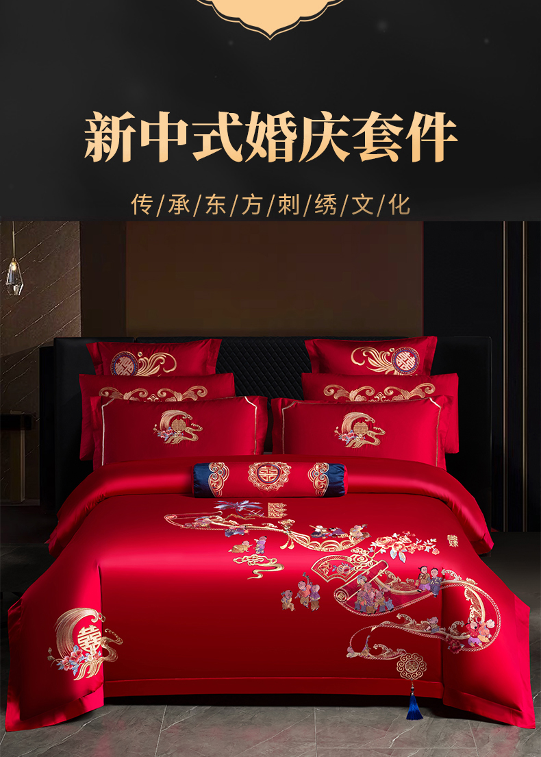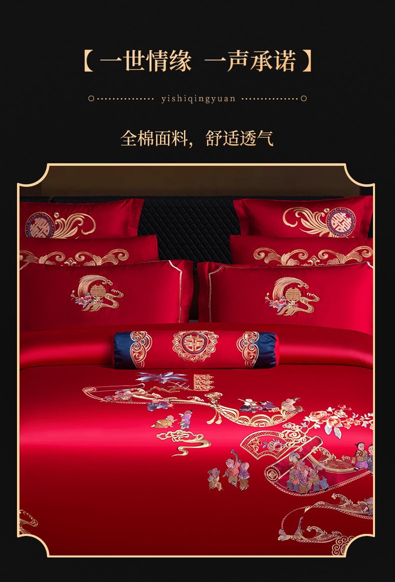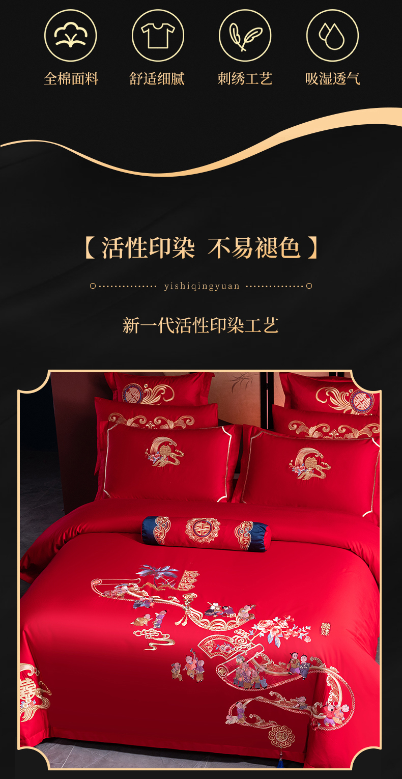 当前位置: 91家纺网 > 商品网购 > 床品套件 > 四件套 > 婚庆四件套 > 慕她家纺 2026慕她大花工艺款全棉纯棉婚庆四件套大红色刺绣结婚床上用品 百子登科