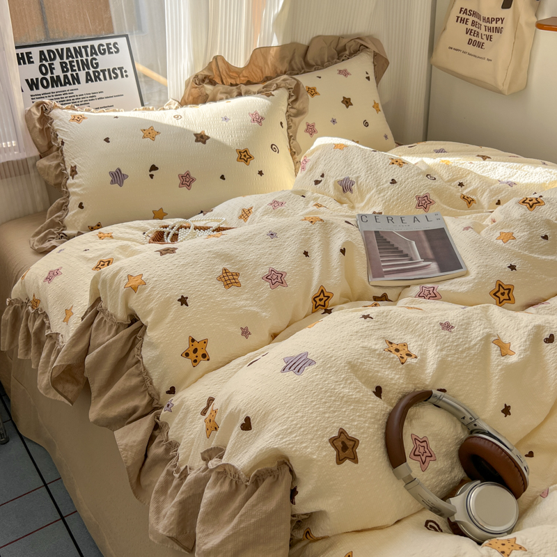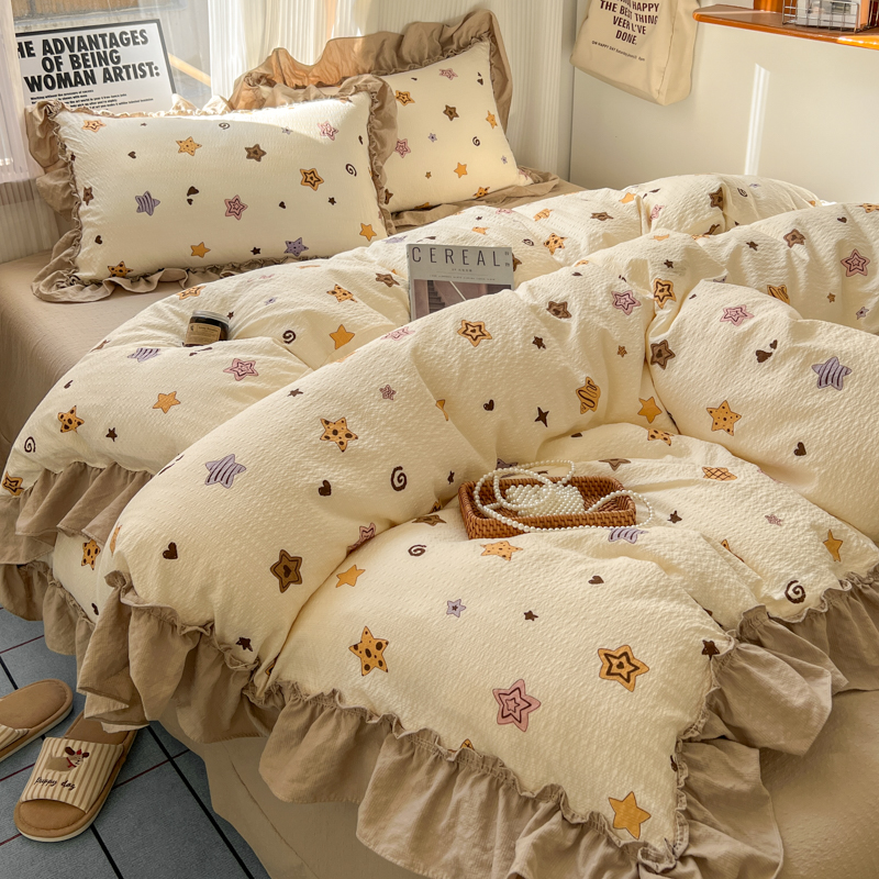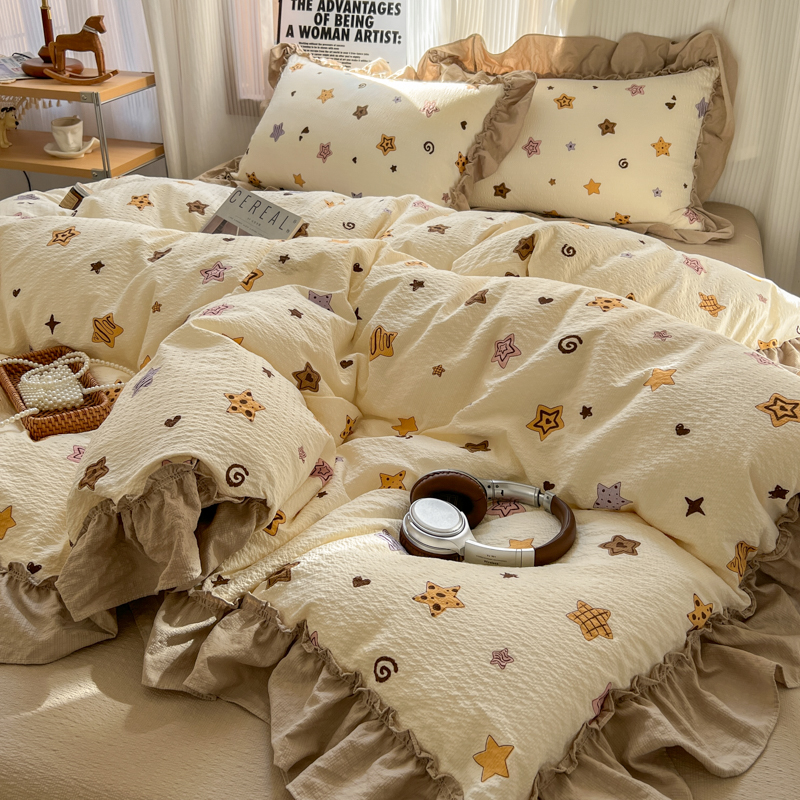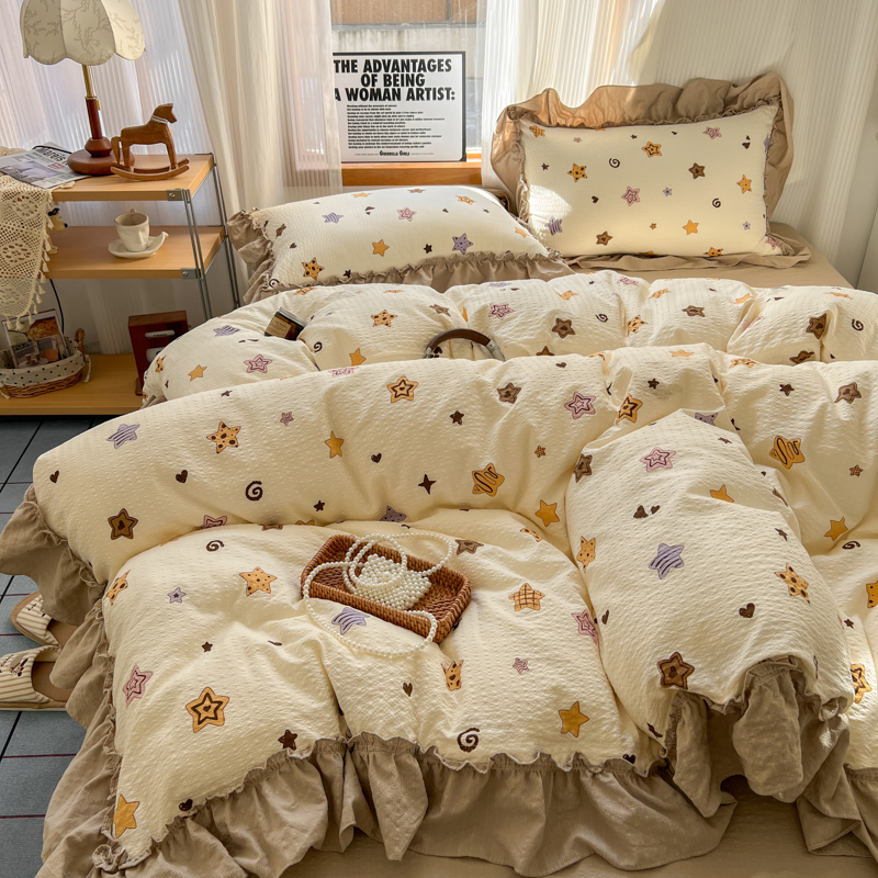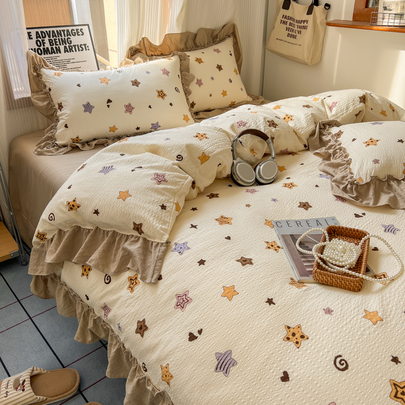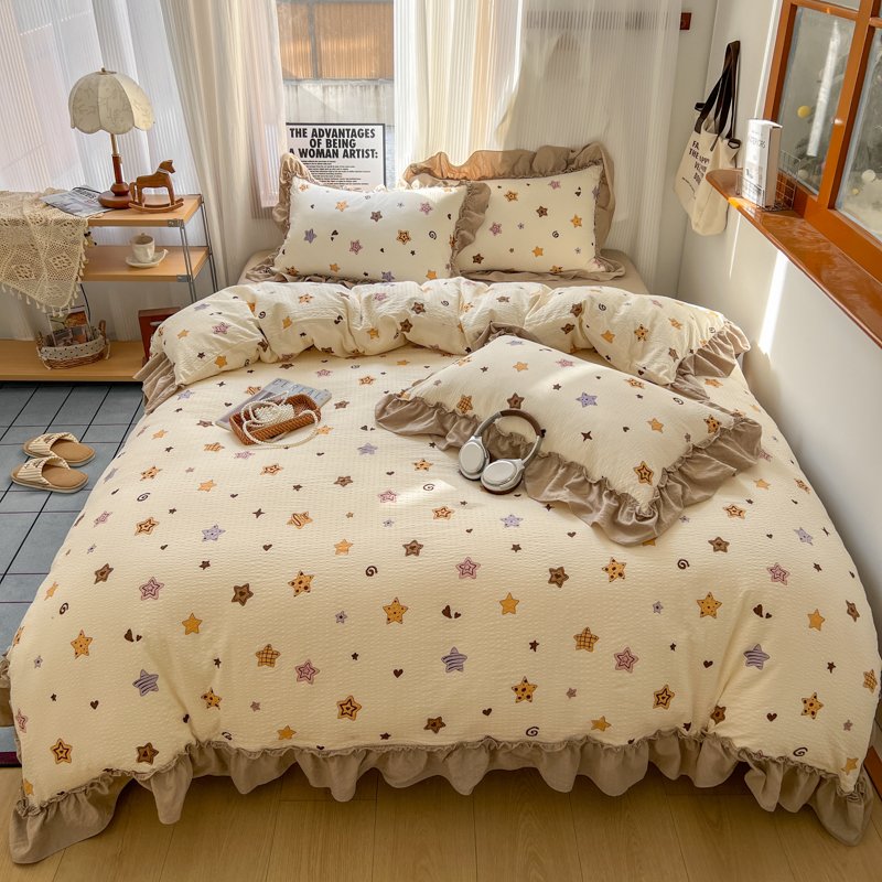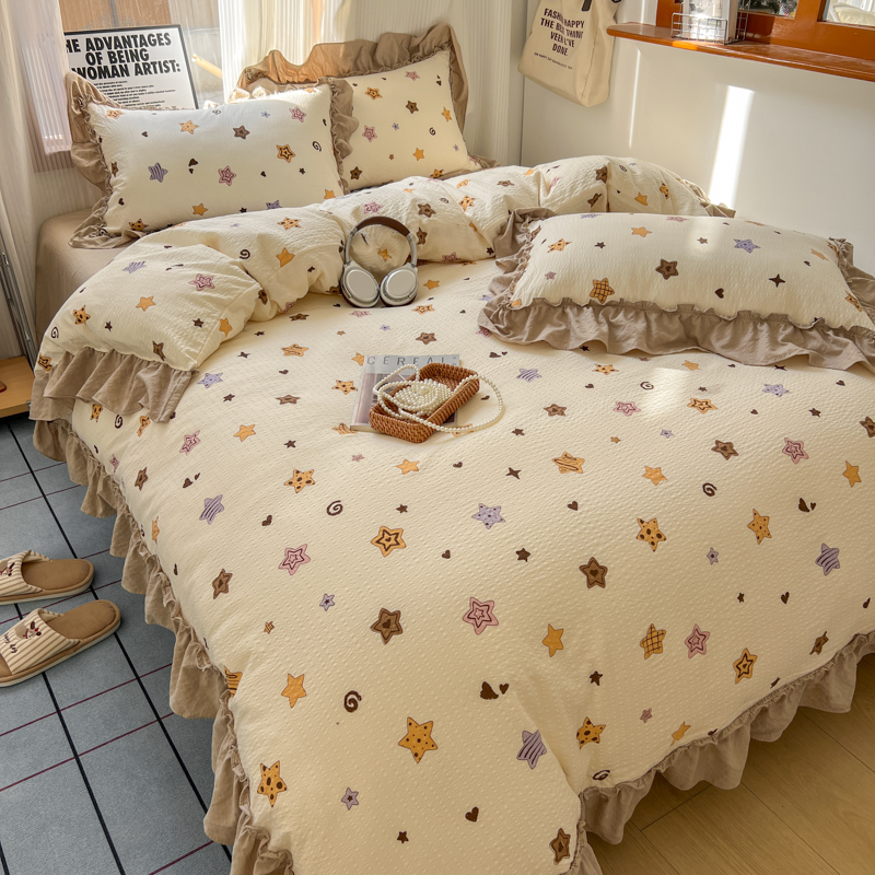 当前位置: 91家纺网 > 商品网购 > 床品套件 > 四件套 > 化纤活性四件套 > 2026新款泡芙纱花边四件套 星愿