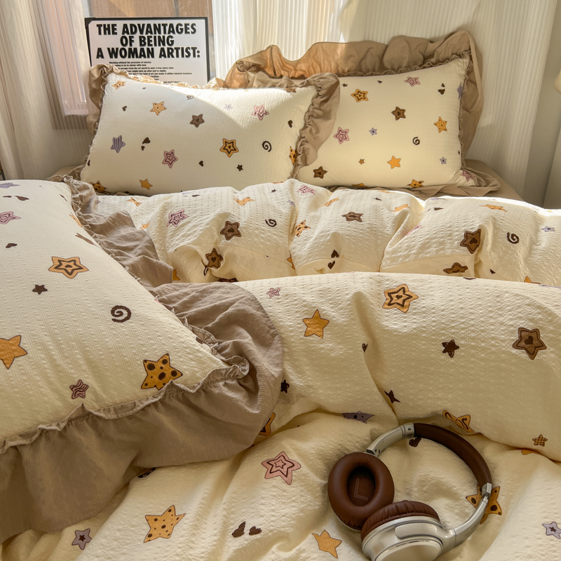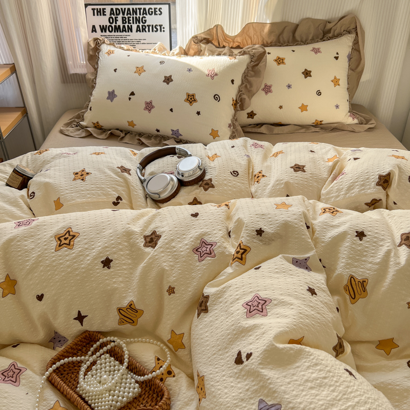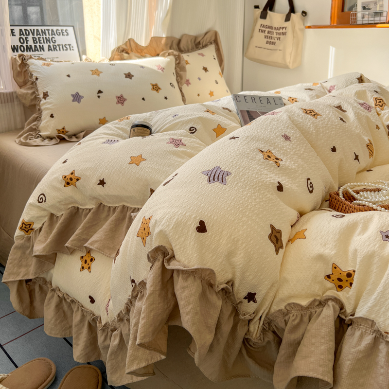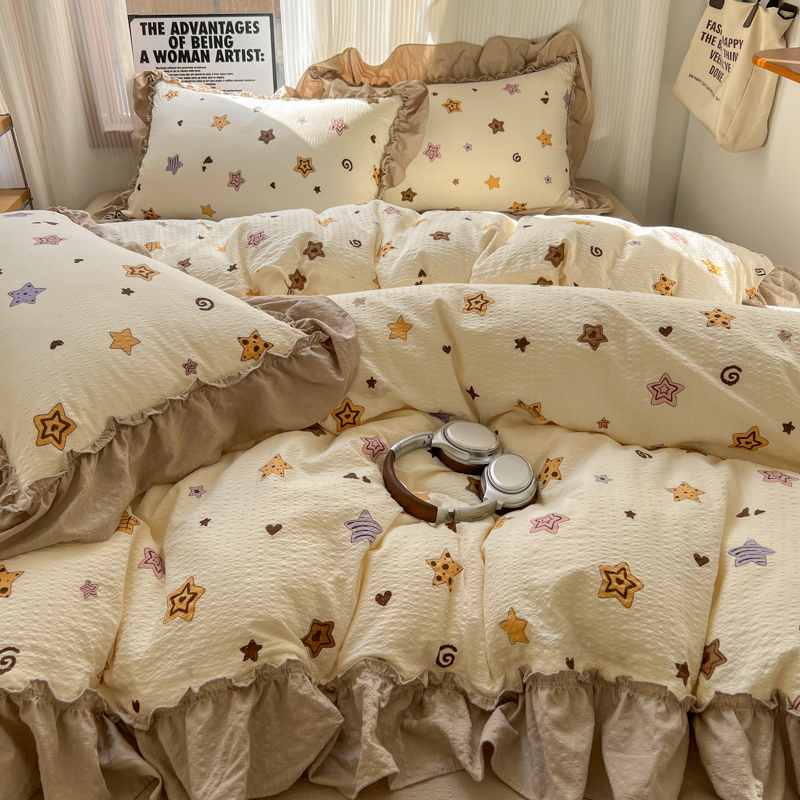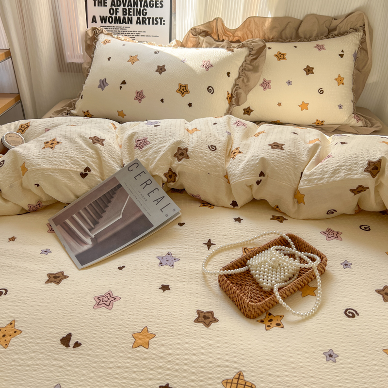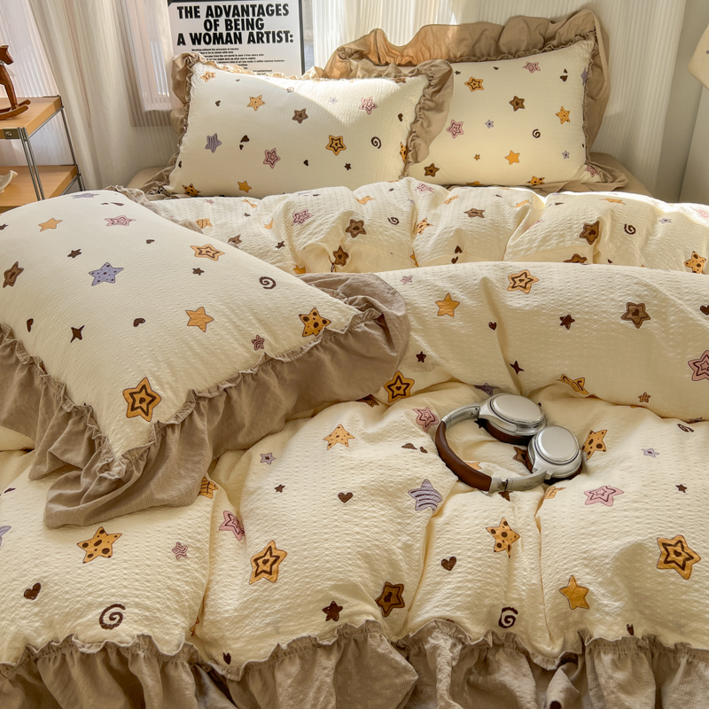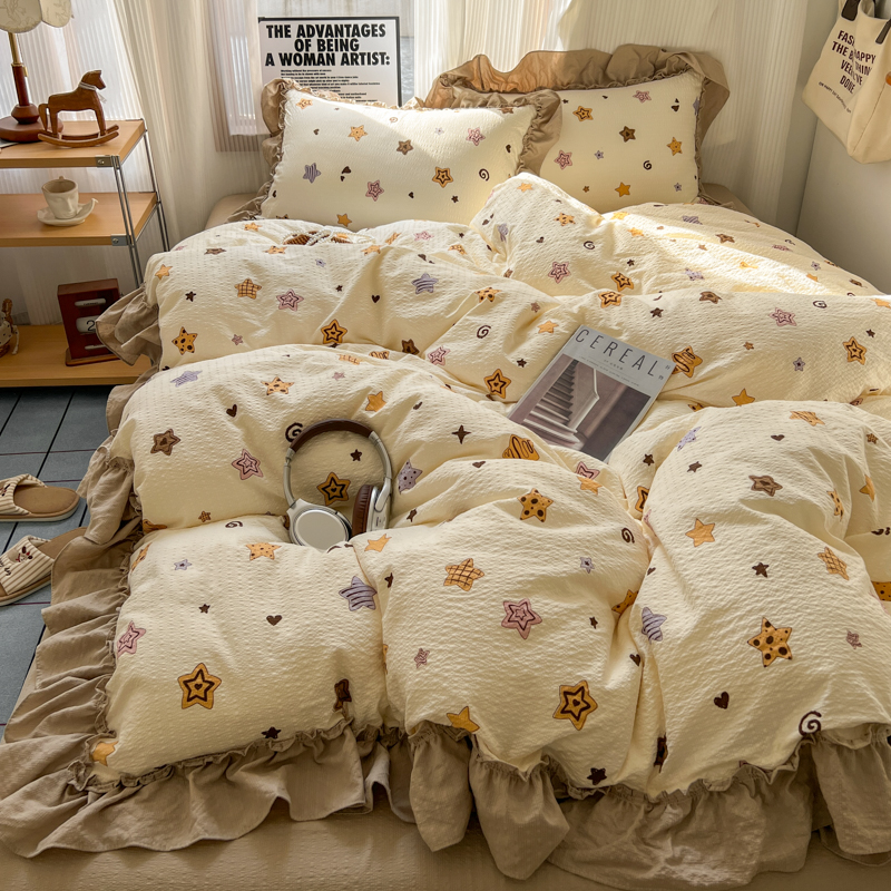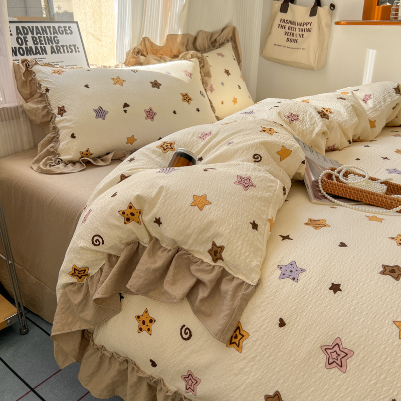 当前位置: 91家纺网 > 商品网购 > 床品套件 > 四件套 > 化纤活性四件套 > 2026新款泡芙纱花边四件套 星愿