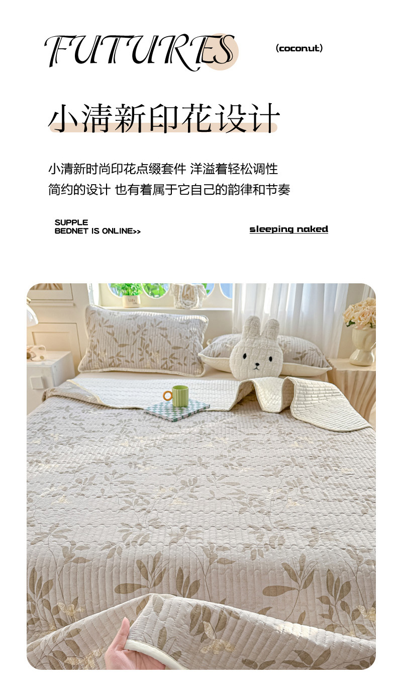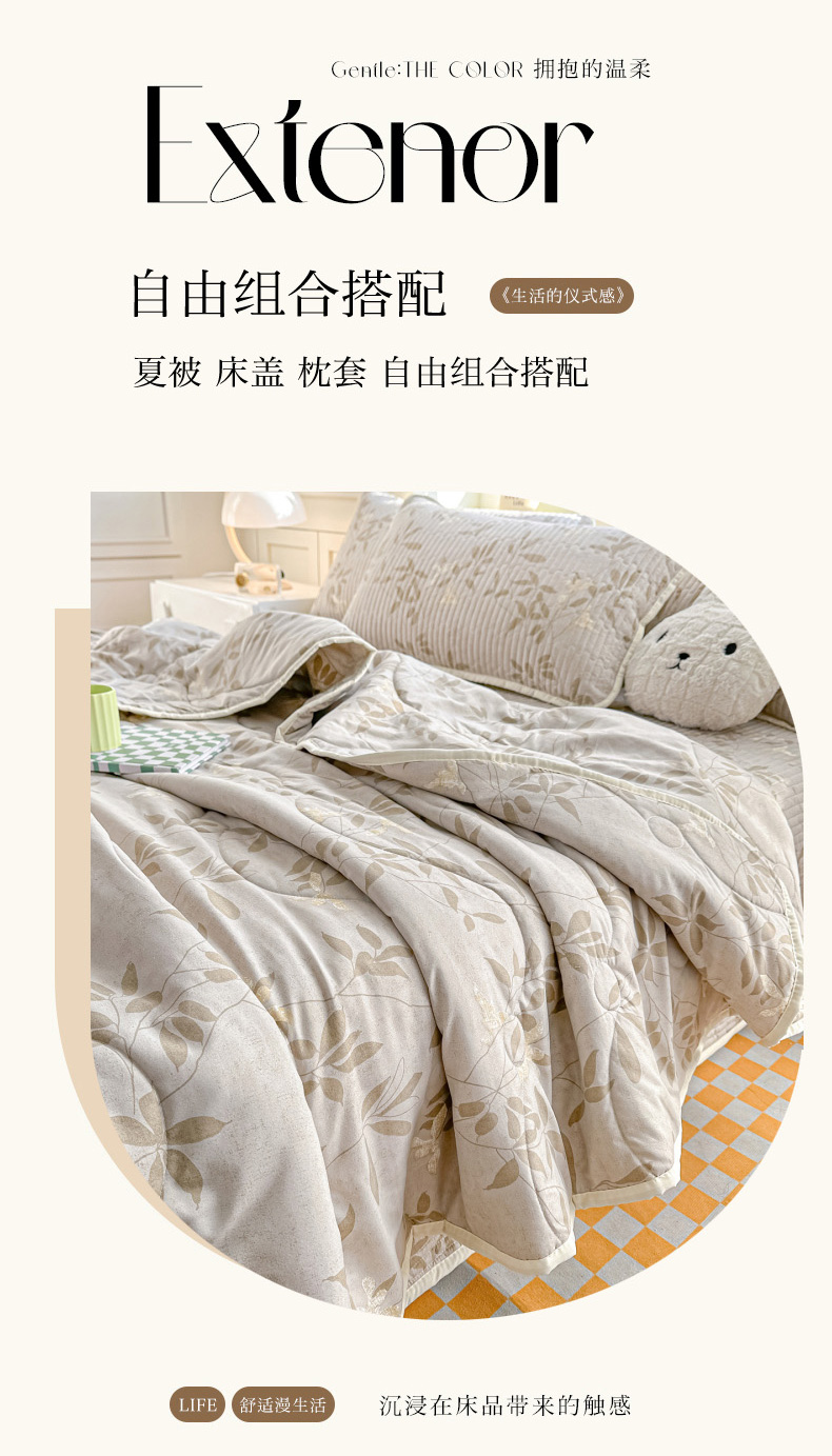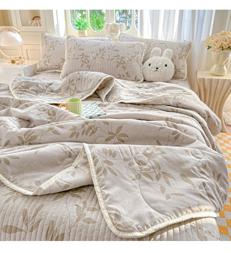 当前位置: 91家纺网 > 商品网购 > 床品套件 > 四件套 > 其它四件套 > 慕澄家纺 2026新款小清新印花水洗棉床盖夏被四件套 灰叶