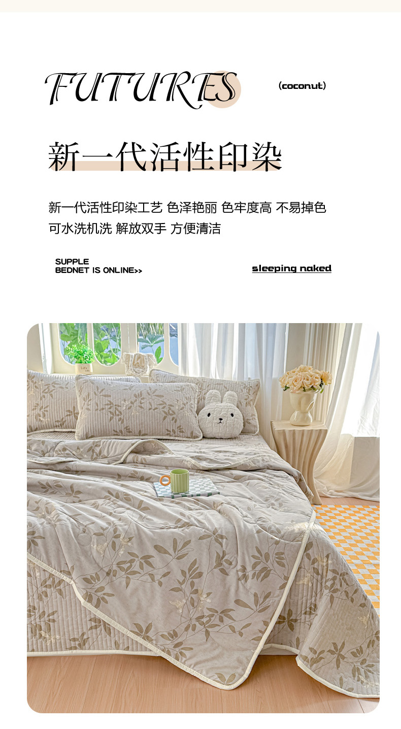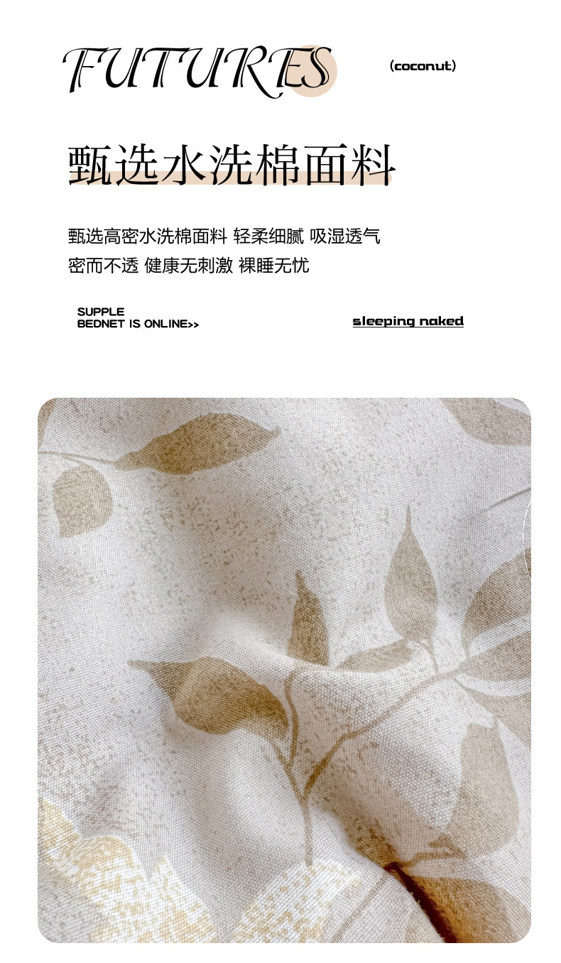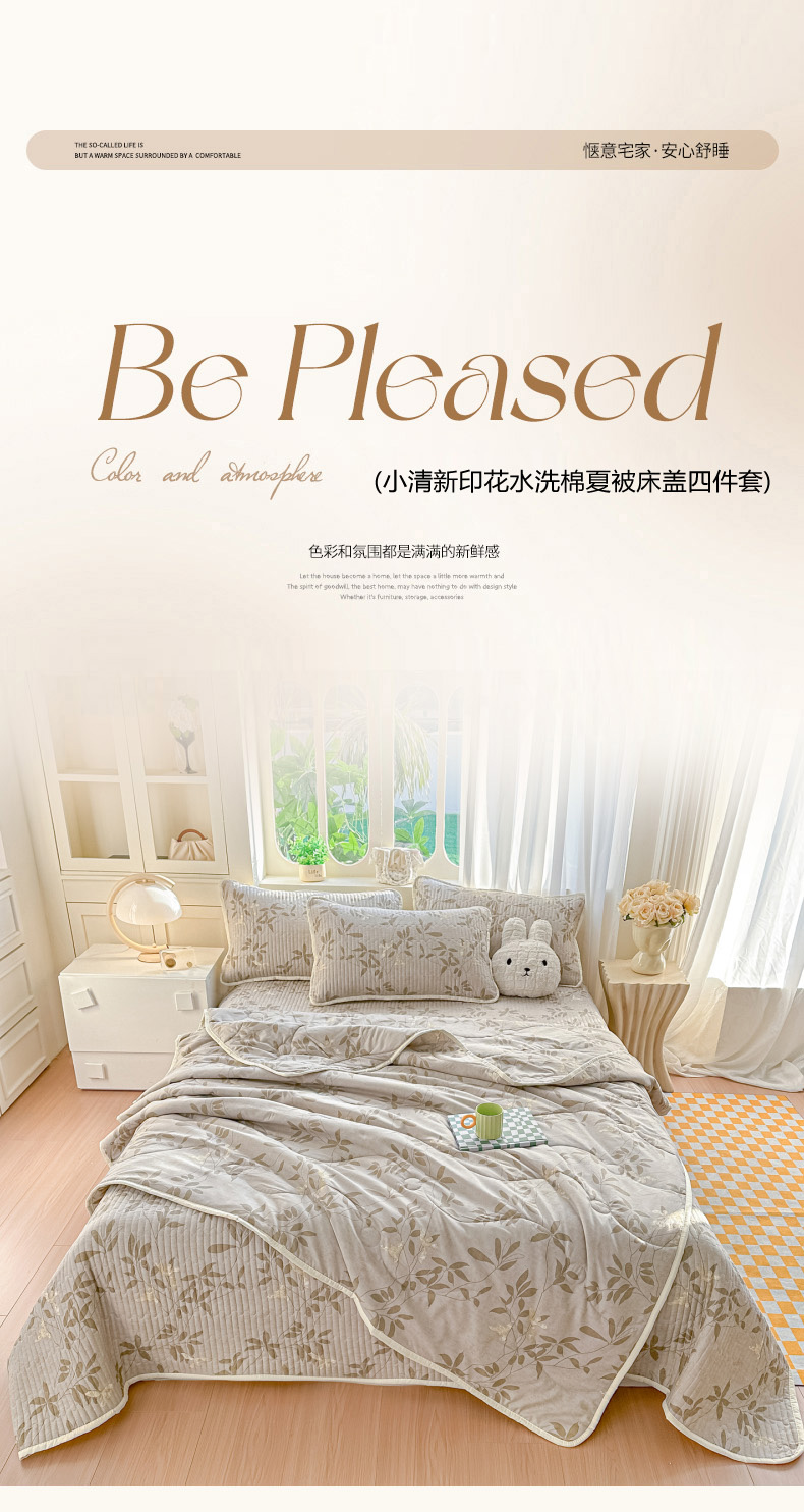 当前位置: 91家纺网 > 商品网购 > 床品套件 > 四件套 > 其它四件套 > 慕澄家纺 2026新款小清新印花水洗棉床盖夏被四件套 灰叶
