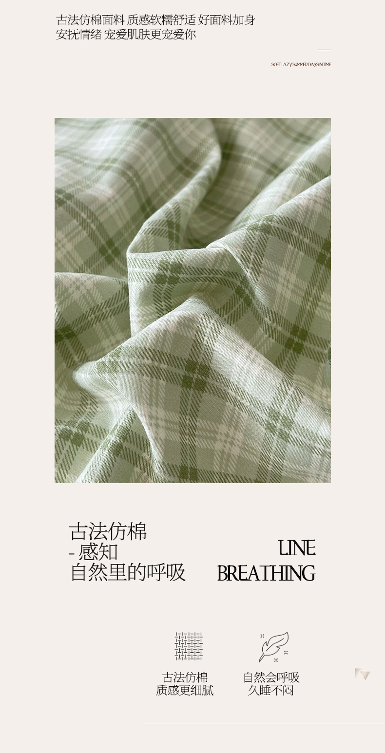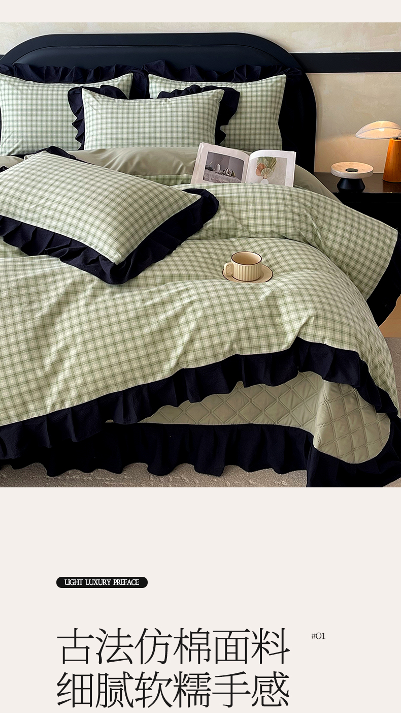 锦彩家居 2026新款花边格子复古风夹棉床盖四件套-西西里岛系列 西西里岛-藤绿
