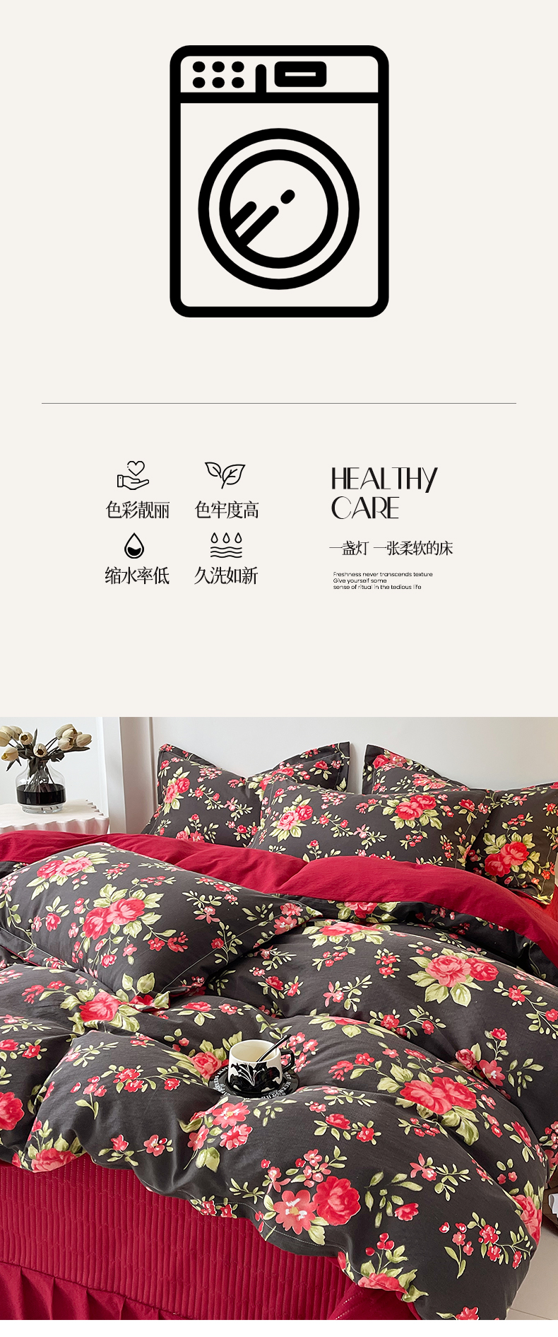 (总)锦彩家居 2026新款皱皱水洗棉床盖四件套,安妮,繁花,海德花园,卡地亚-红,玫瑰园,樱桃蜜语