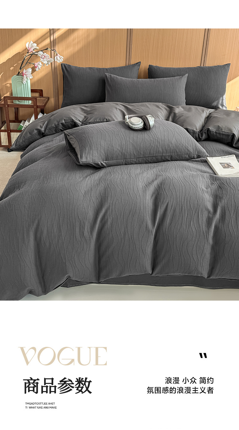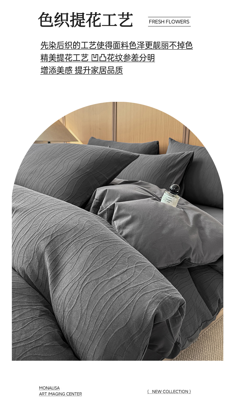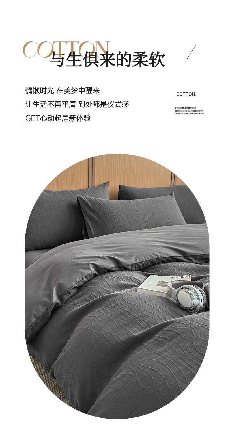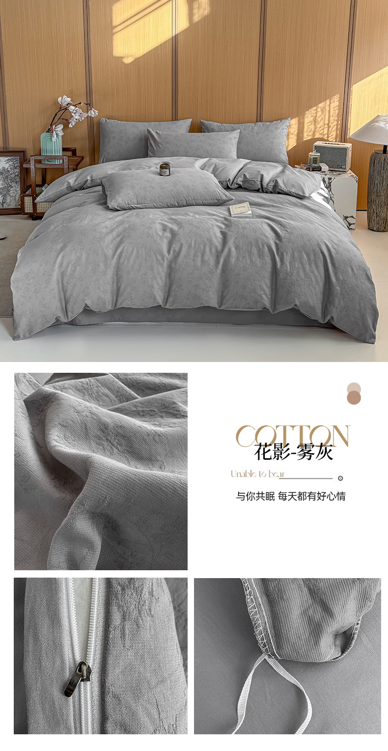 当前位置: 91家纺网 > 商品网购 > 床品套件 > 四件套 > 全棉普通四件套 > 灰鲸 2026新款全棉纯棉三层纱色织提花四件套 浅忆-素墨