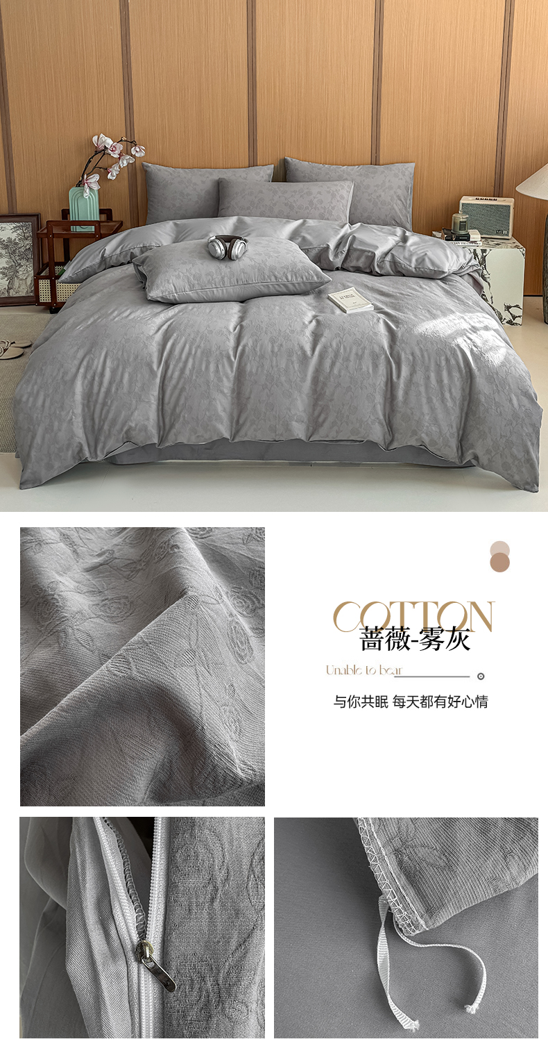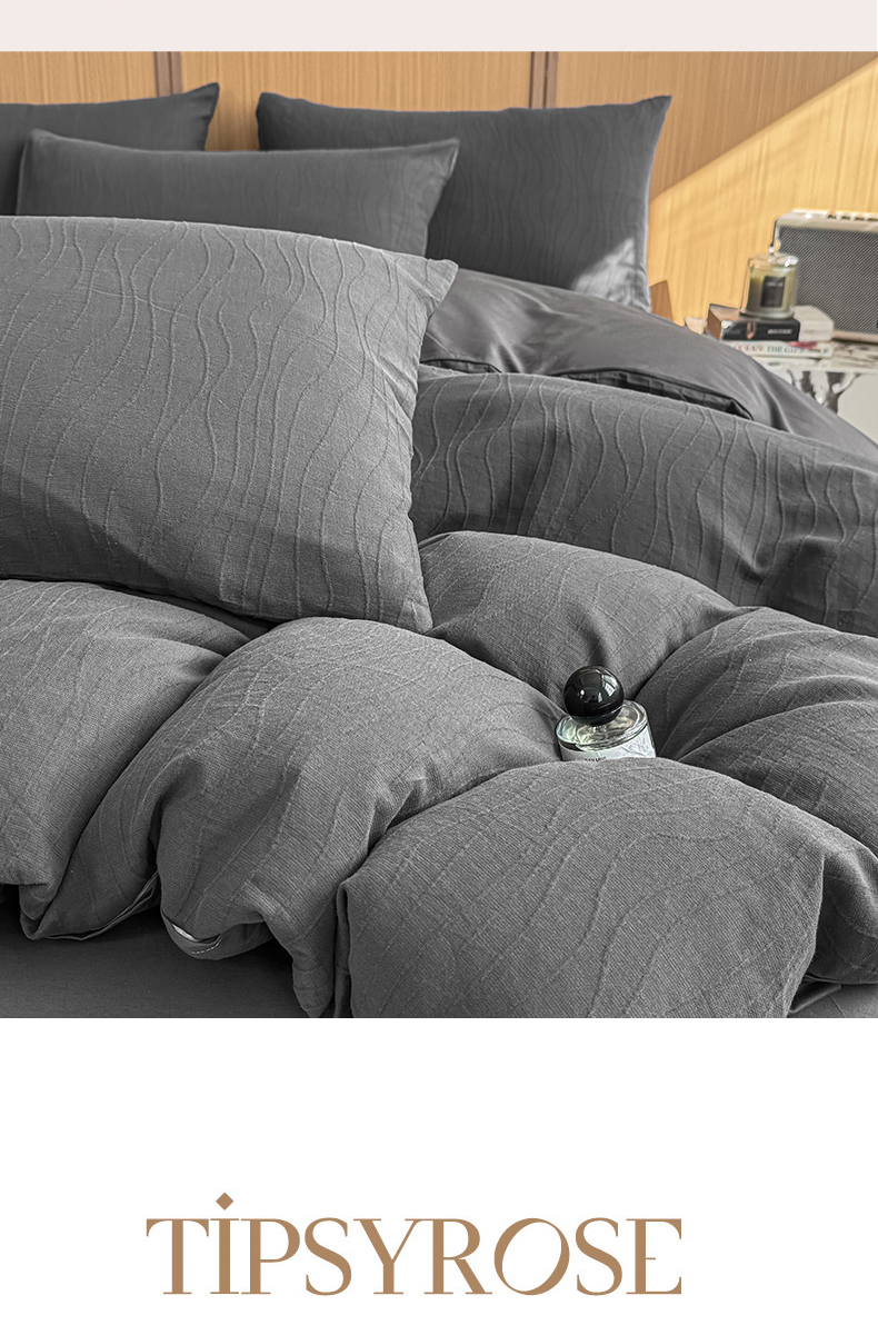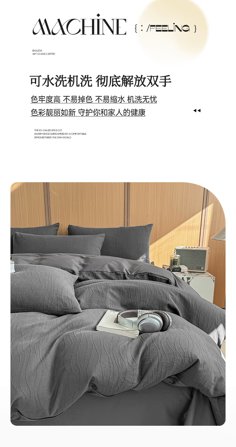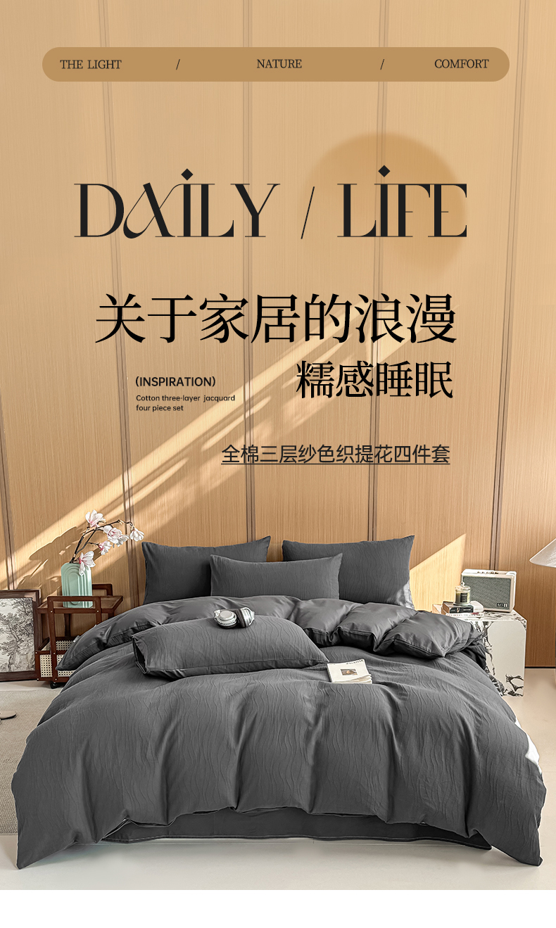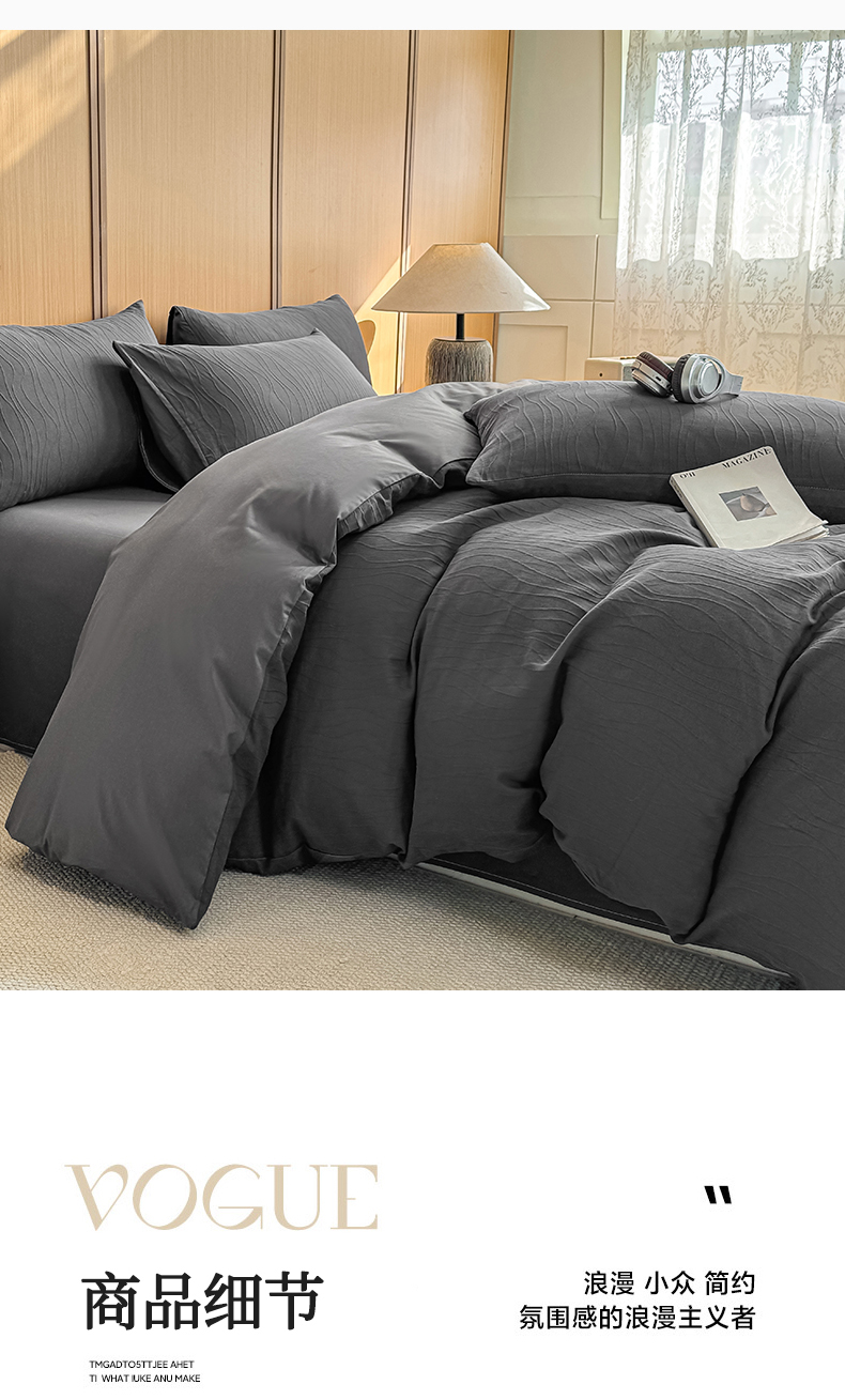 当前位置: 91家纺网 > 商品网购 > 床品套件 > 四件套 > 全棉普通四件套 > 灰鲸 2026新款全棉纯棉三层纱色织提花四件套 浅忆-素墨