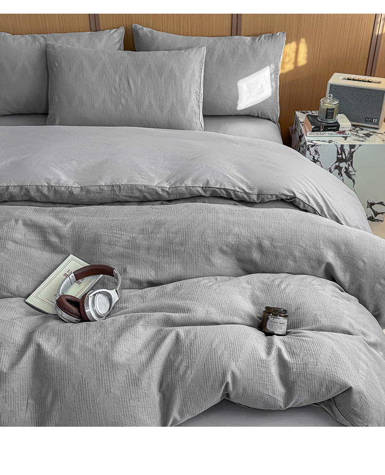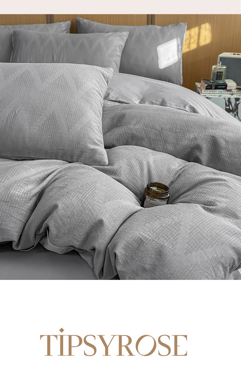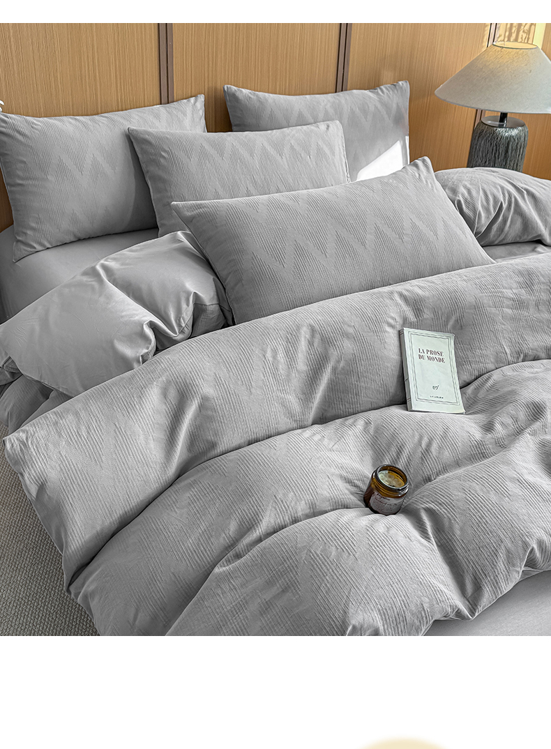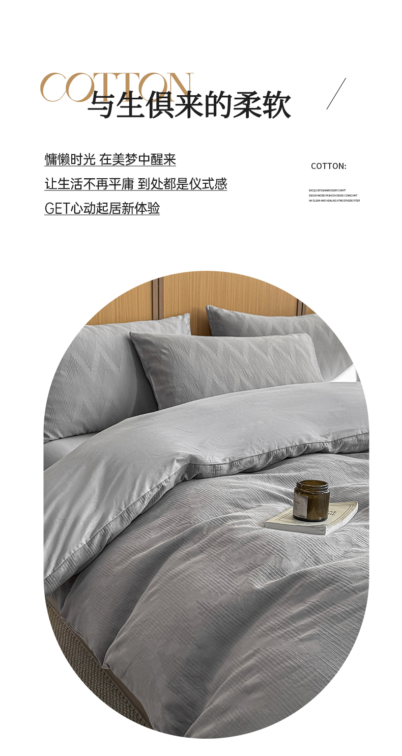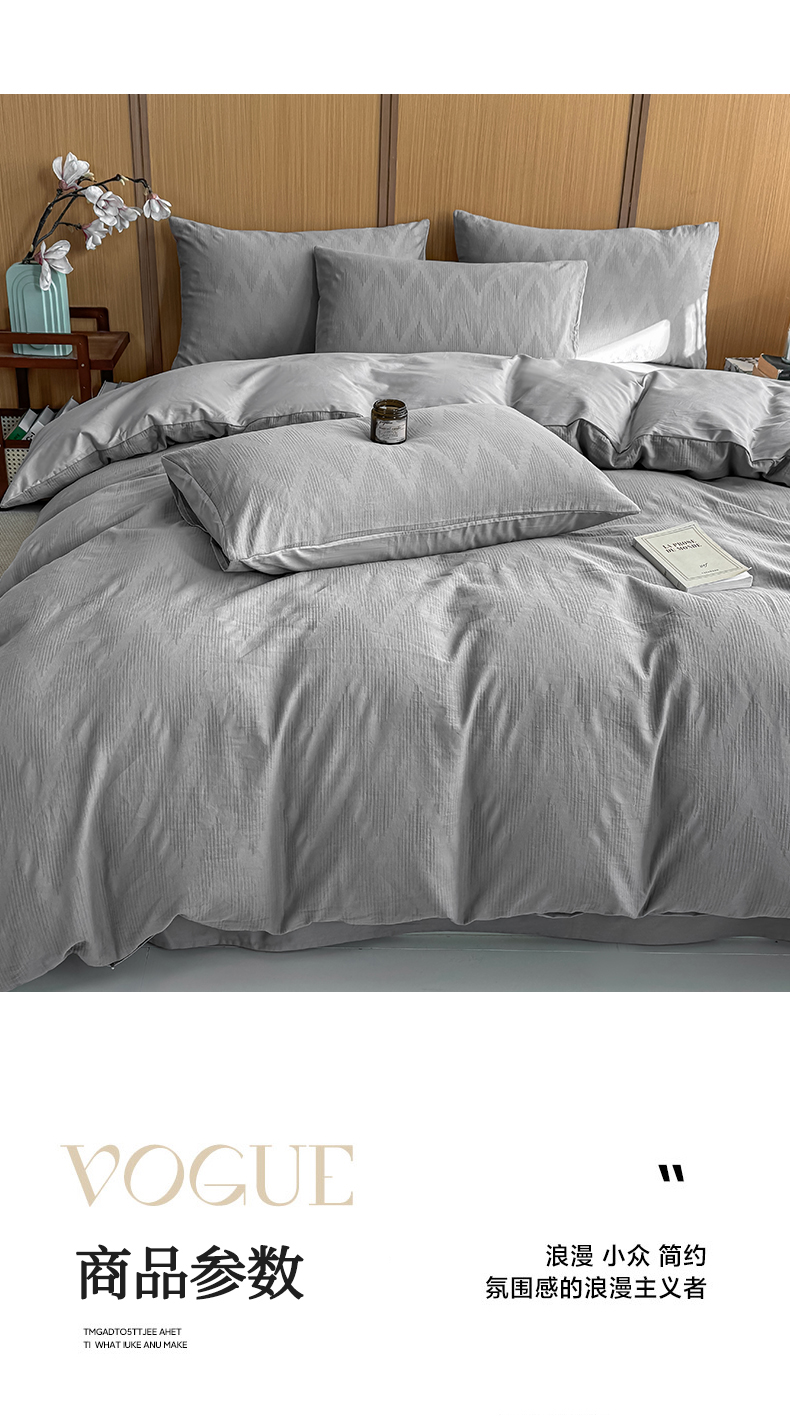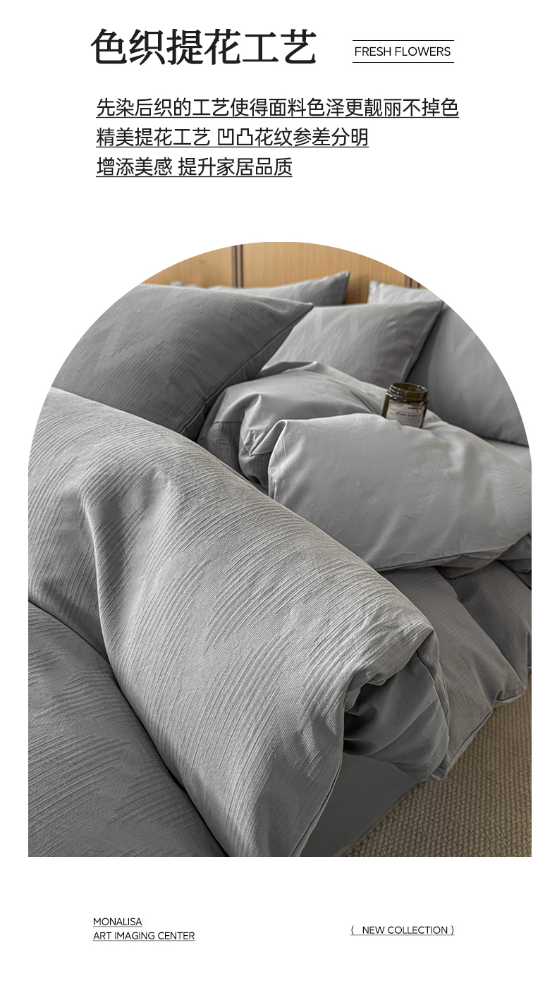当前位置: 91家纺网 > 商品网购 > 床品套件 > 四件套 > 全棉普通四件套 > 灰鲸 2026新款全棉纯棉三层纱色织提花四件套 影韵-雾灰