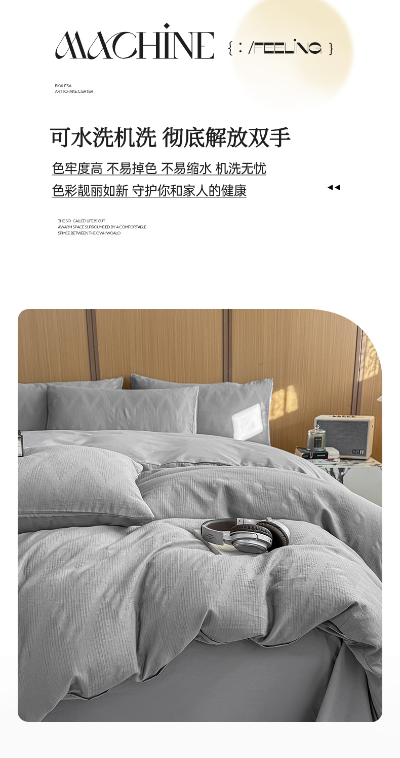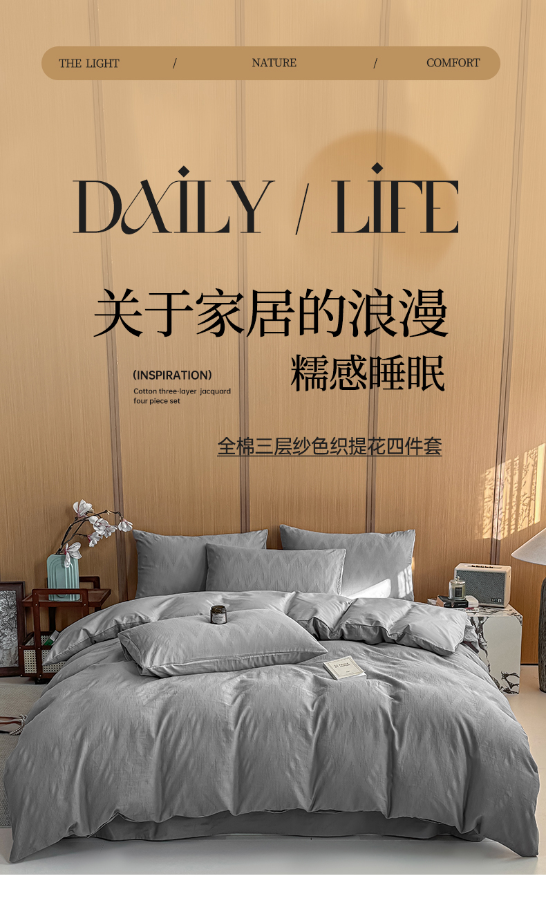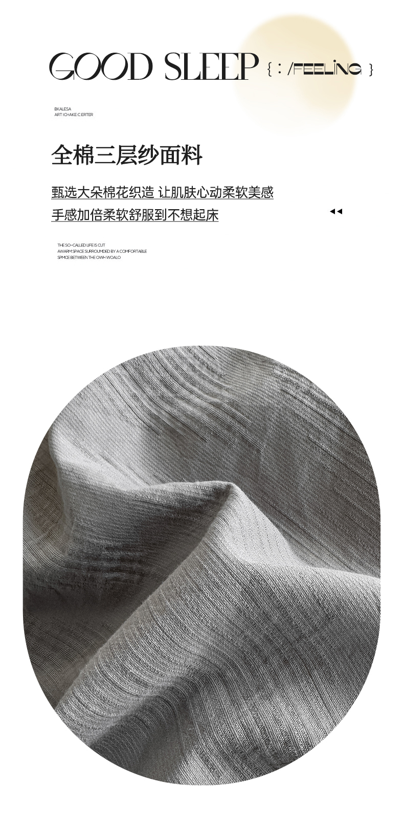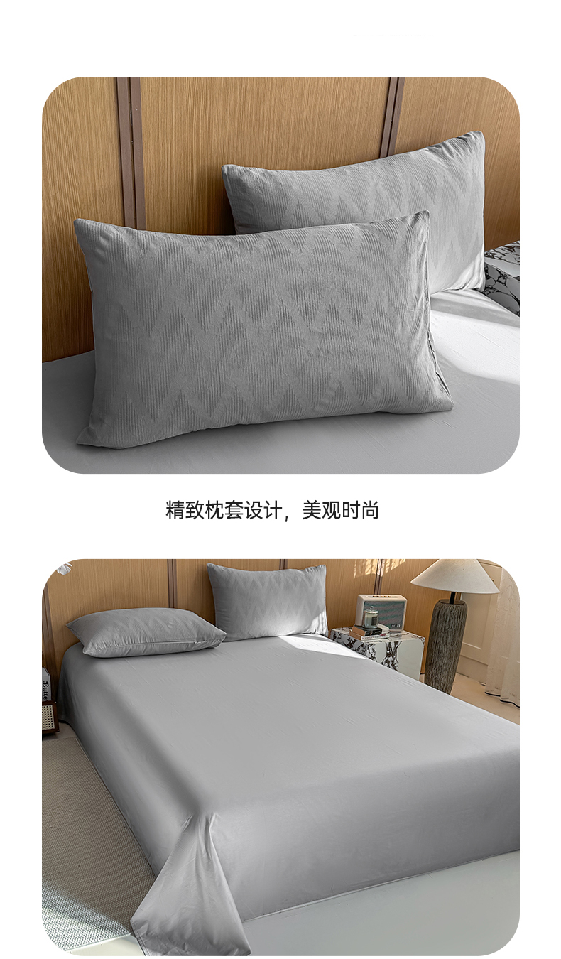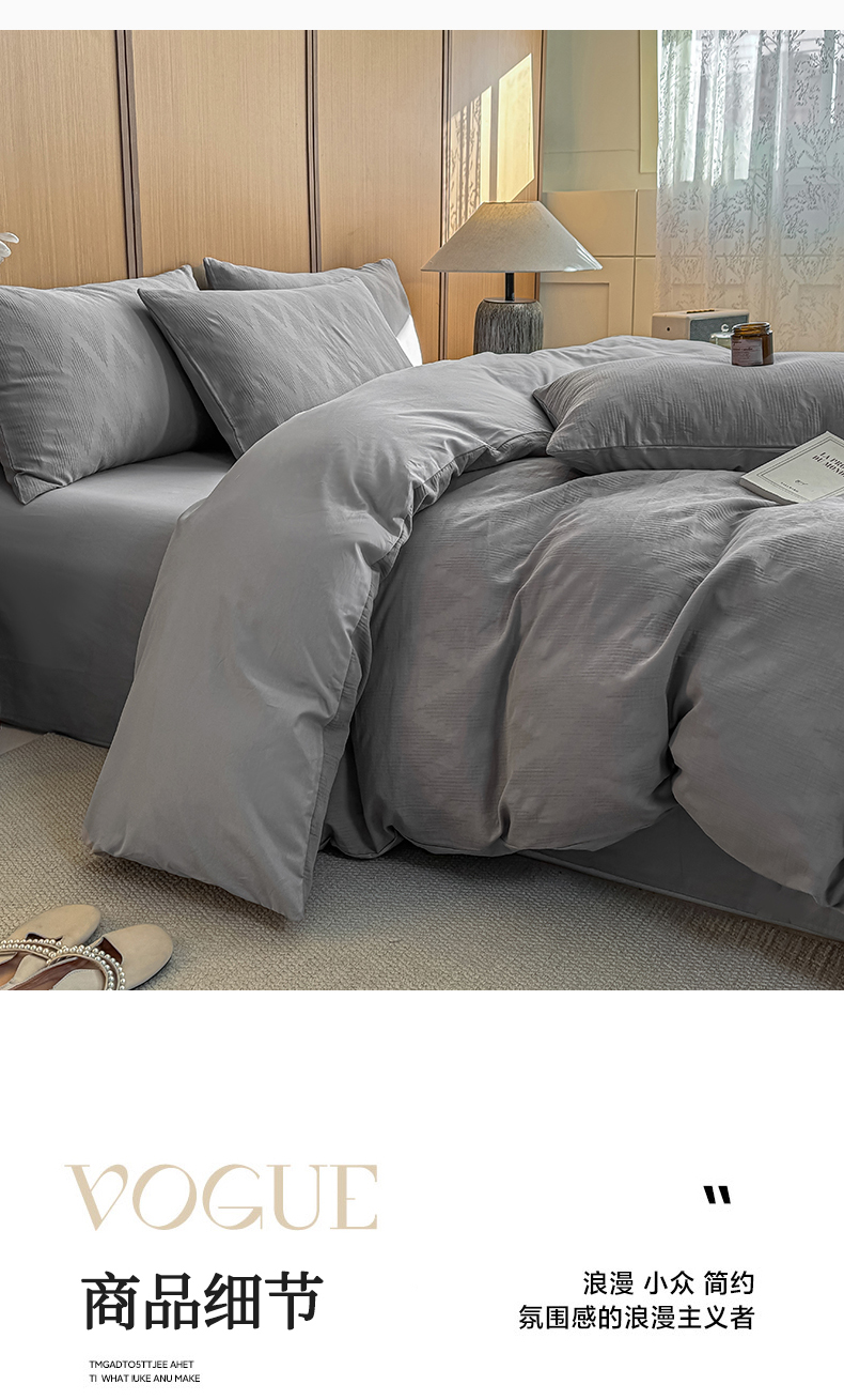 当前位置: 91家纺网 > 商品网购 > 床品套件 > 四件套 > 全棉普通四件套 > 灰鲸 2026新款全棉纯棉三层纱色织提花四件套 影韵-雾灰